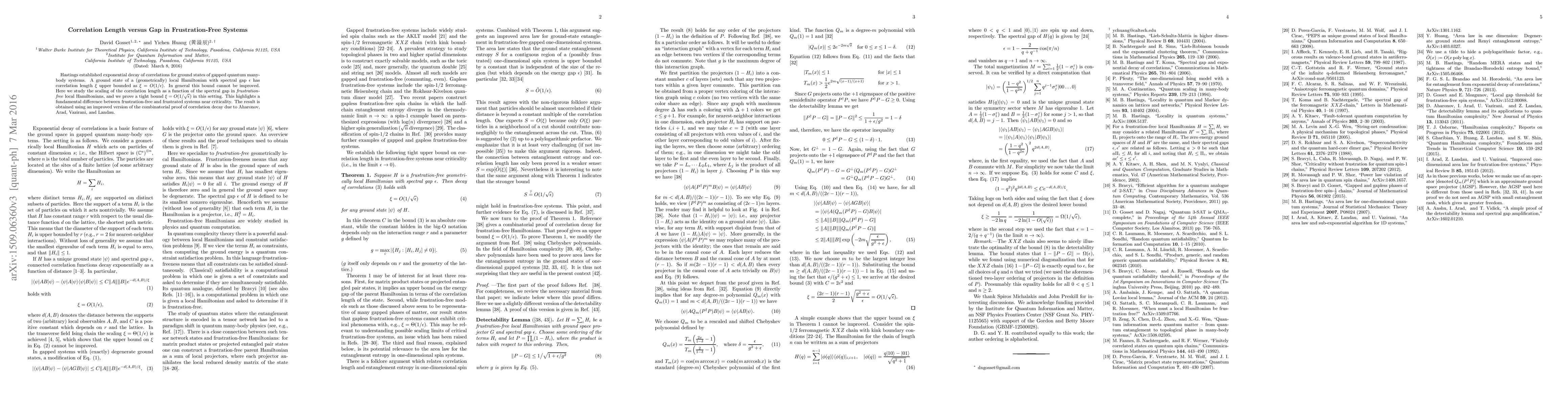 This paper establishes a tighter bound on the correlation length in frustration-free quantum many-body systems, showing that $\xi=O(1/\sqrt\epsilon)$ compared to the general bound $\xi=O(1/\epsilon)$. This highlights a key distinction between frustration-free and frustrated systems, achieved through an enhanced combinatorial proof technique.
