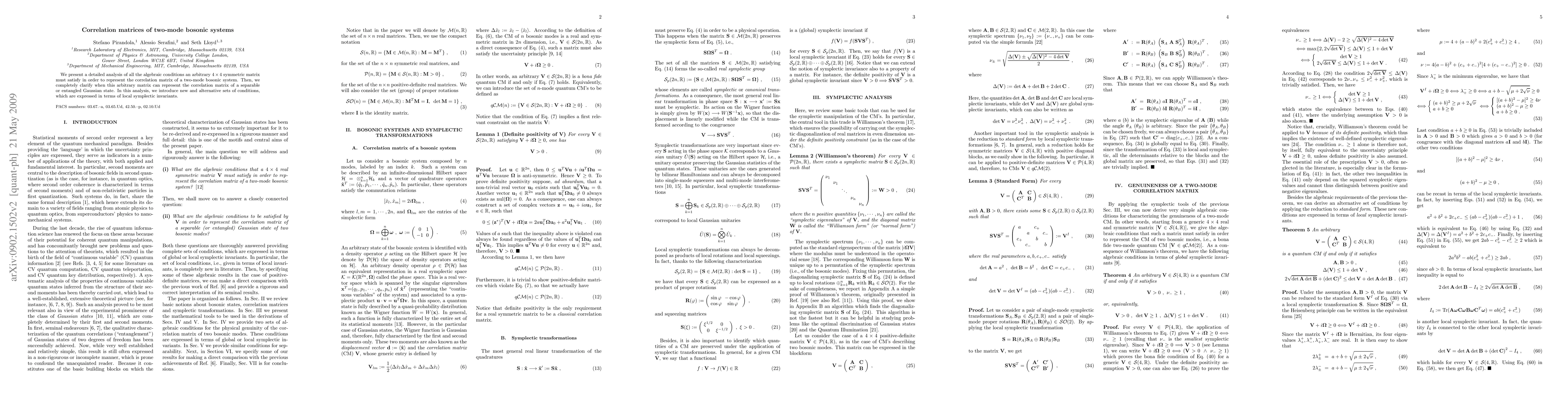 We present a detailed analysis of all the algebraic conditions an arbitrary 4x4 symmetric matrix must satisfy in order to represent the correlation matrix of a two-mode bosonic system. Then, we completely clarify when this arbitrary matrix can represent the correlation matrix of a separable or entangled Gaussian state. In this analysis, we introduce new and alternative sets of conditions, which are expressed in terms of local symplectic invariants.