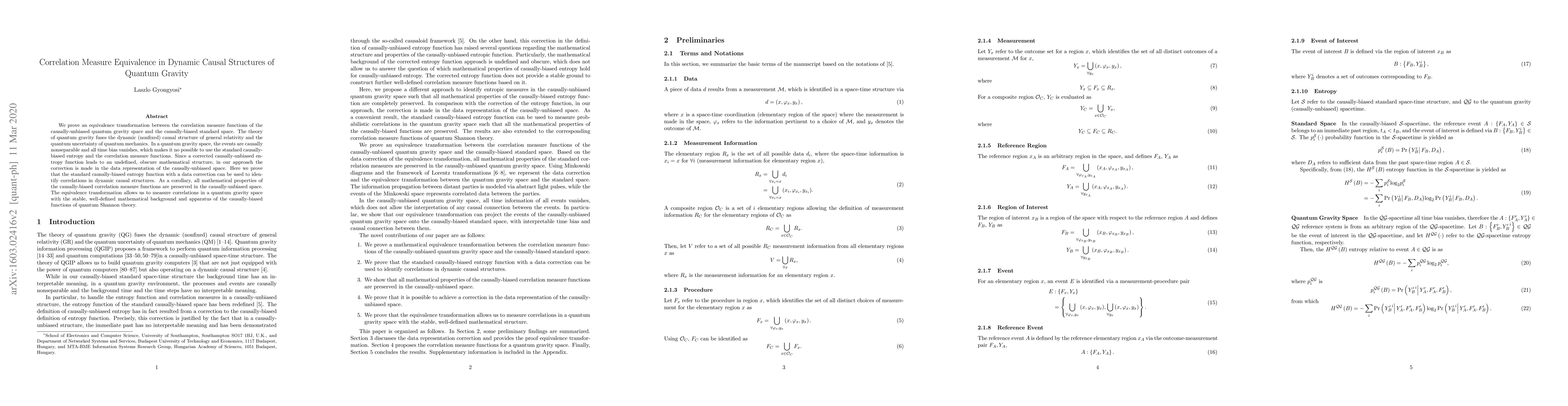 The paper presents a formal proof of equivalence transformation and data representation correction for correlation measures in quantum gravity spaces, bridging the gap between dynamic causal structures and stable causally biased functions.