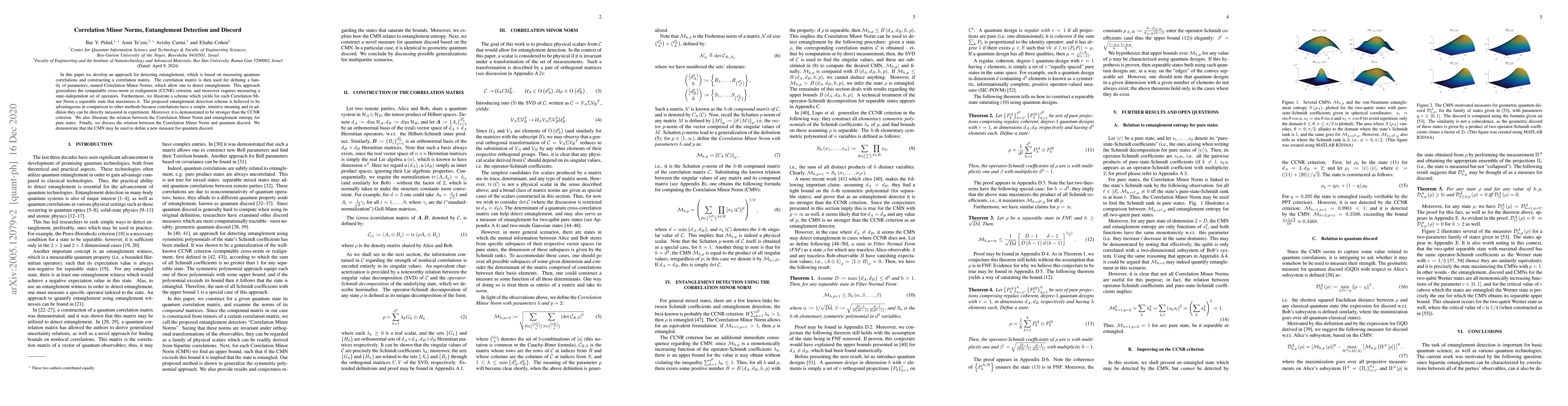 This paper proposes a new entanglement detection method based on Correlation Minor Norms, which generalizes the CCNR criterion and can be directly measured in experiments. It also explores the relation between these norms and quantum discord, suggesting a new measure for discord.