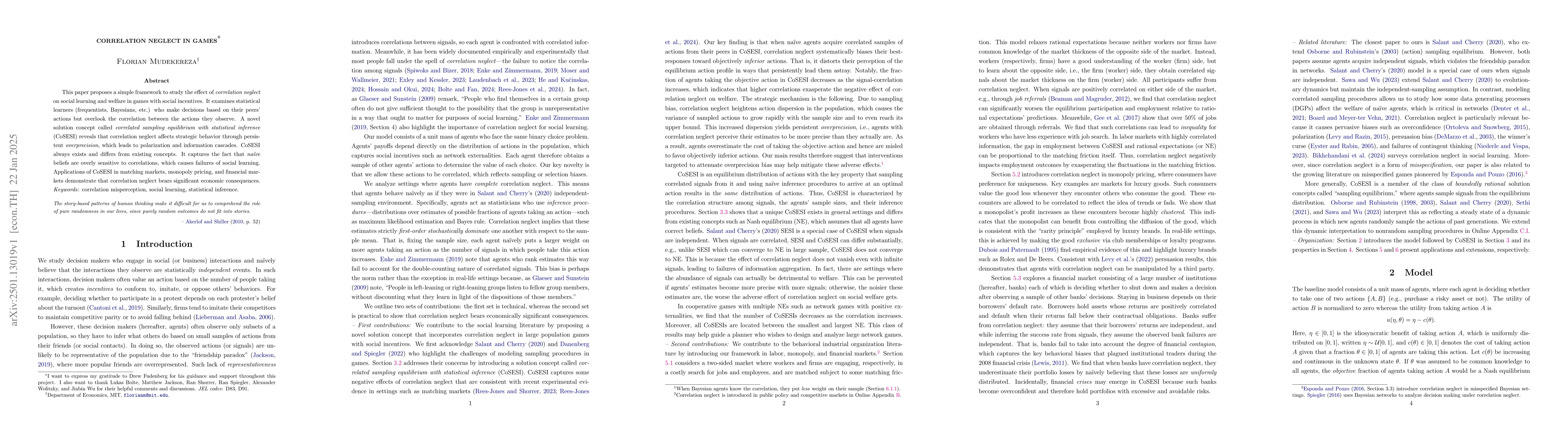 This paper introduces a framework to analyze the impact of correlation neglect on social learning in games with social incentives, proposing a novel concept called CoSESI that shows correlation neglect leads to persistent overprecision, causing polarization and information cascades. The analysis reveals significant economic consequences in matching markets, monopoly pricing, and financial markets.