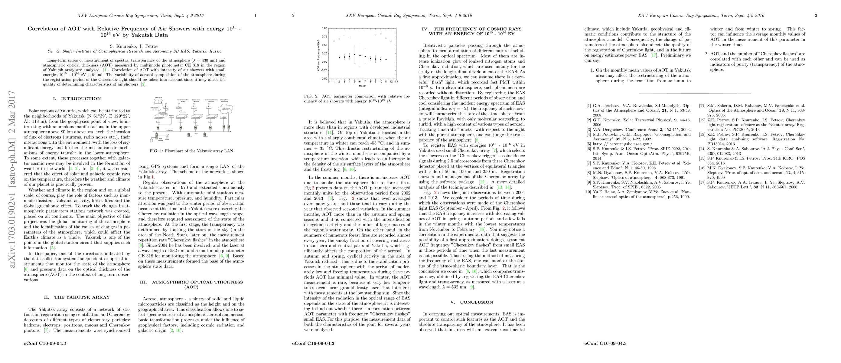 Researchers found a correlation between atmospheric optical thickness (AOT) and air shower intensity with small energies in Yakutsk region. Variability of aerosol composition should be considered for accurate determination of air shower characteristics.