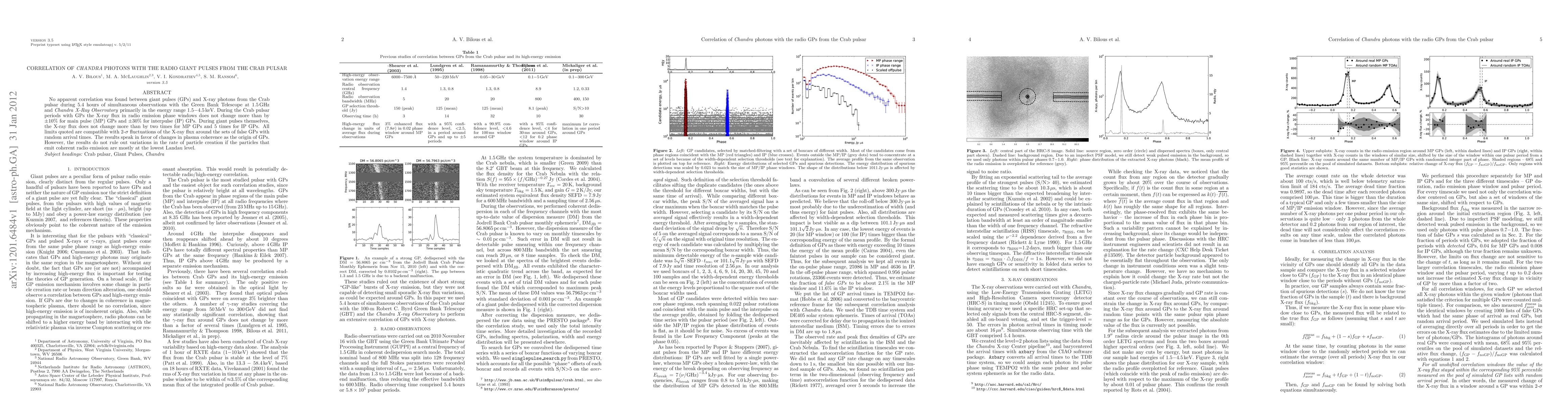 The study found no correlation between giant pulses from the Crab pulsar and X-ray photons observed by Chandra, suggesting plasma coherence as a potential origin for the radio pulses. Variations in particle creation rates remain possible if particles at the lowest Landau level are primarily involved.