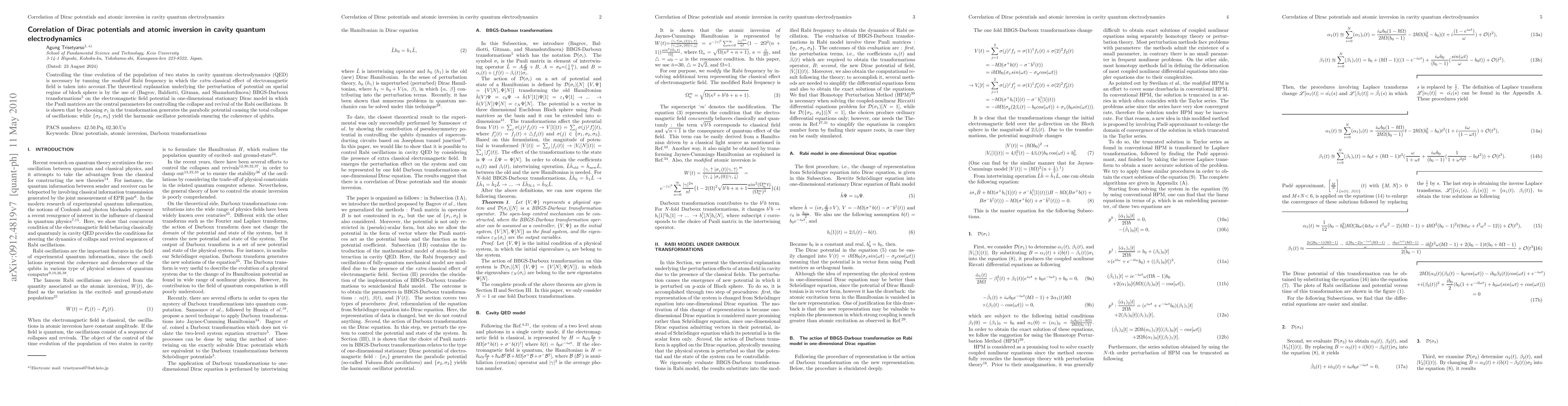 Controlling the time evolution of the population of two states in cavity quantum electrodynamics (QED) is necessary by tunning the \textit{modified} Rabi frequency in which the $\textit{extra}$ classical effect of electromagnetic field is taken into account.The theoretical explanation underlying the perturbation of potential on spatial regime of bloch sphere is by the use of (Bagrov, Baldiotti, Gitman, and Shamshutdinova) BBGS-Darboux transformations \cite{bagrov14darboux} on the electromagnetic field potential in one-dimensional stationary Dirac model in which the Pauli matrices are the central parameters for controlling the collapse and revival of the Rabi oscillations. It is shown that by choosing $\sigma_{1}$ in the transformation generates the parabolic potential causing the total collapse of oscillations; while $\{\sigma_{2}, \sigma_{3}\}$ yield the harmonic oscillator potentials ensuring the coherence of qubits.