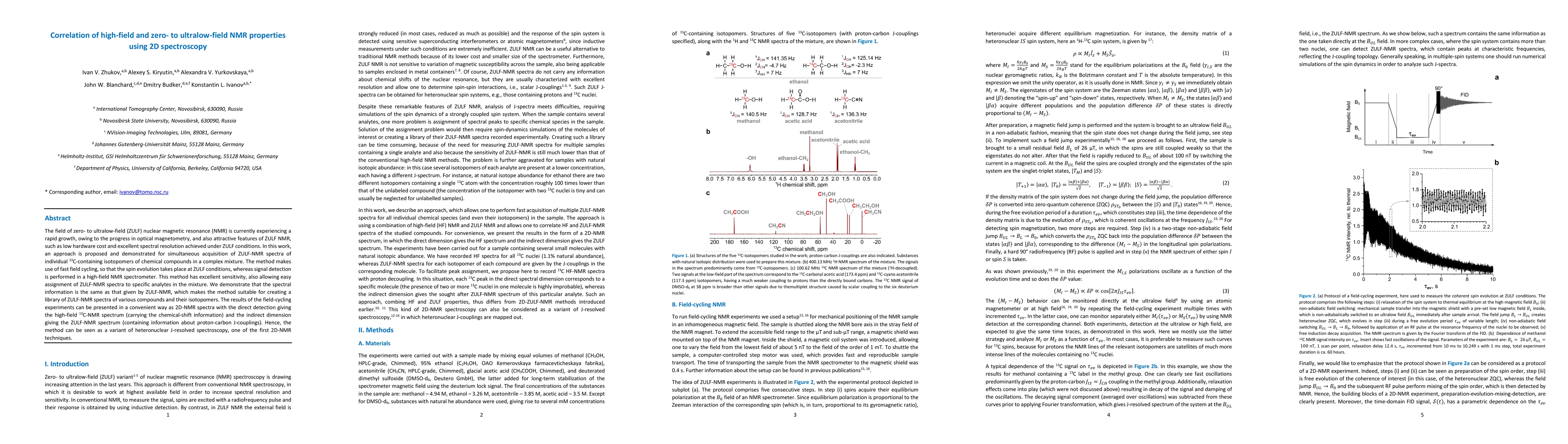 The research proposes a method for simultaneous acquisition of ZULF-NMR spectra of individual 13C-containing isotopomers in a complex mixture using fast field cycling, where spin evolution occurs at ZULF conditions and signal detection is performed in a high-field NMR spectrometer.