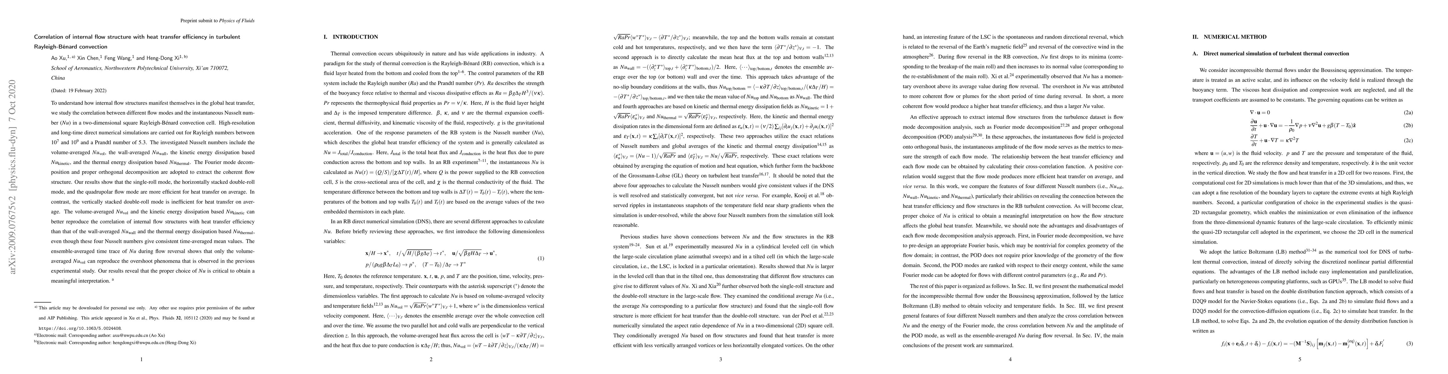 This paper investigates the correlation between internal flow structures and heat transfer efficiency in turbulent Rayleigh-Bénard convection using high-resolution simulations. It finds that certain flow modes, like the single-roll and horizontally stacked double-roll modes, are more efficient for heat transfer than others, emphasizing the importance of choosing the appropriate Nusselt number for accurate interpretation.