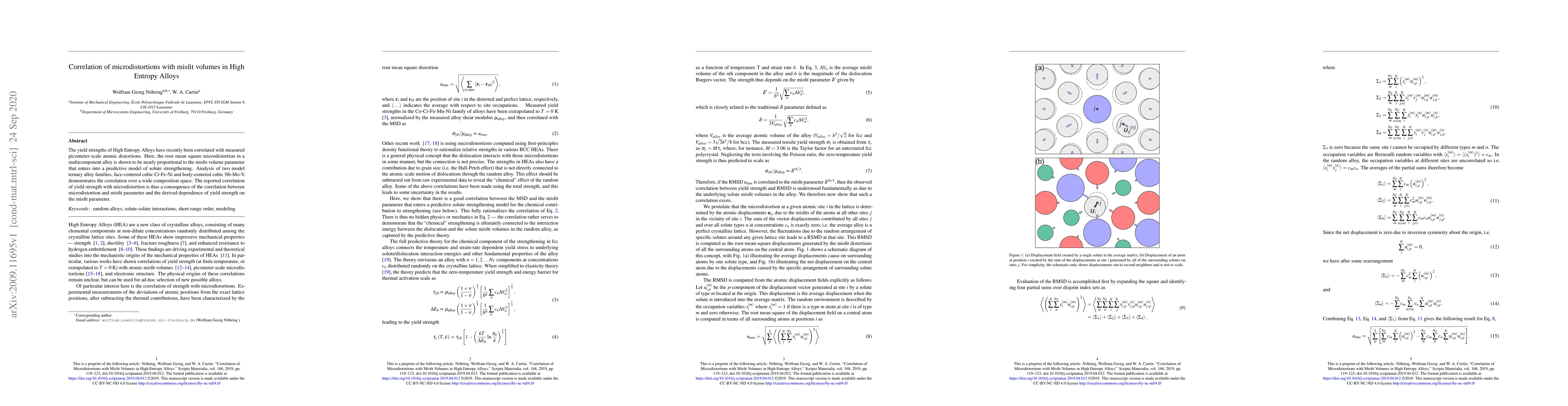 This research provides a theoretical framework to predict yield strength in High Entropy Alloys (HEAs) by relating microdistortions to misfit volumes, which can be estimated through macroscopic experiments or theoretical methods like Vegard’s Law.