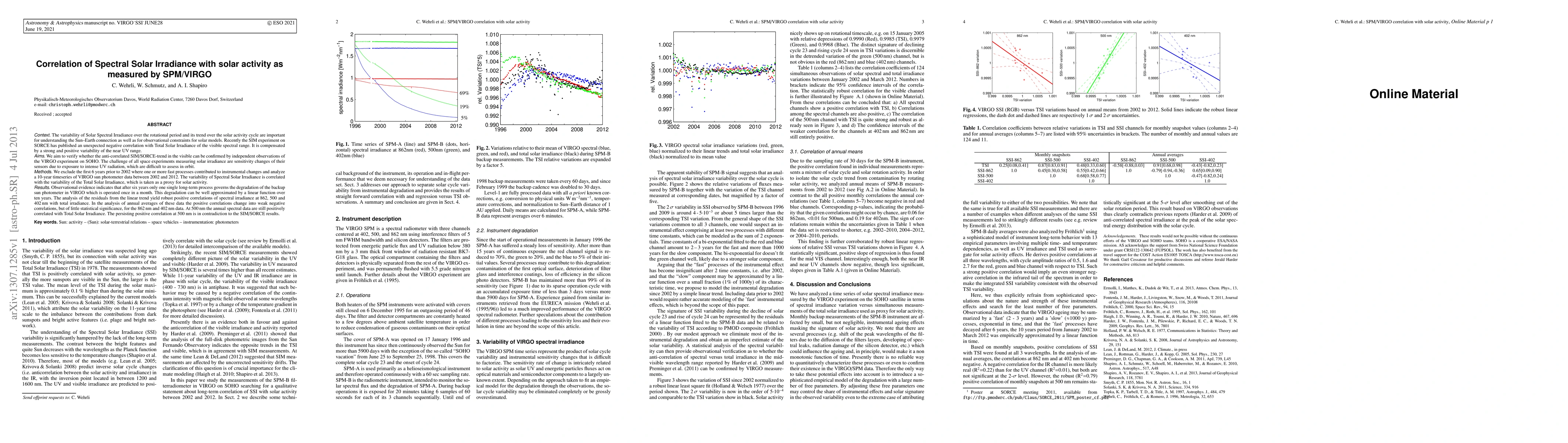This paper investigates the correlation between Spectral Solar Irradiance and solar activity using VIRGO data from 2002 to 2012, finding robust positive correlations at 862, 500, and 402 nm with Total Solar Irradiance, contradicting the negative correlation observed by SIM/SORCE in the visible range.