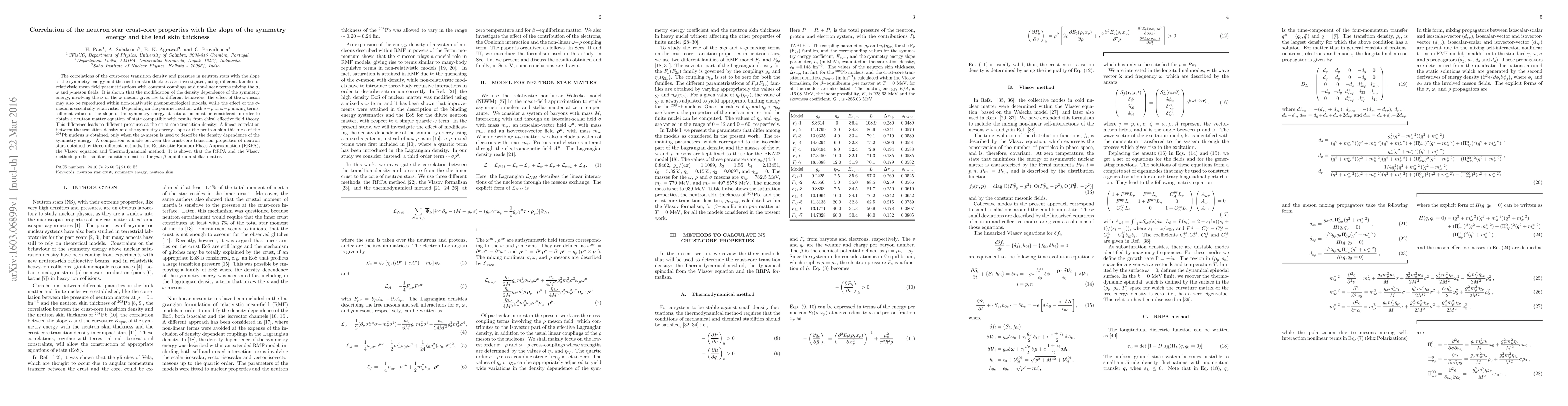 This paper investigates the relationship between neutron star crust-core properties and the slope of the symmetry energy, using relativistic mean field models. It finds that the $\sigma$ and $\omega$ mesons influence the density dependence of the symmetry energy differently, leading to varying crust-core transition densities and pressures.