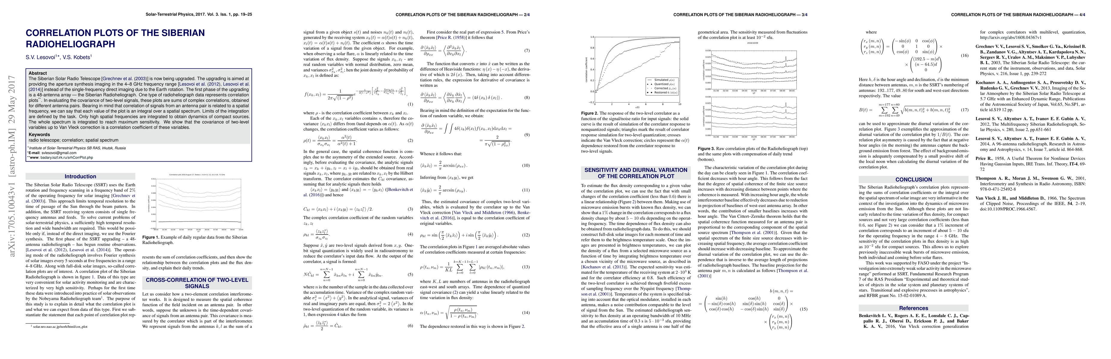 The Siberian Solar Radio Telescope is now being upgraded. The upgrading is aimed at providing the aperture synthesis imaging in the 4-8 GHz frequency range, instead of the single-frequency direct imaging due to the Earth rotation. The first phase of the upgrading is a 48-antenna array - the Siberian Radioheliograph. One type of radioheliograph data represents correlation plots. In evaluating the covariance of two-level signals, these plots are sums of complex correlations, obtained for different antenna pairs. Bearing in mind that correlation of signals from an antenna pair is related to a spatial frequency, we can say that each value of the plot is an integral over a spatial spectrum. Limits of the integration are defined by the task. Only high spatial frequencies are integrated to obtain dynamics of compact sources. The whole spectrum is integrated to reach maximum sensitivity. We show that the covariance of two-level variables up to Van Vleck correction is a correlation coefficient of these variables.