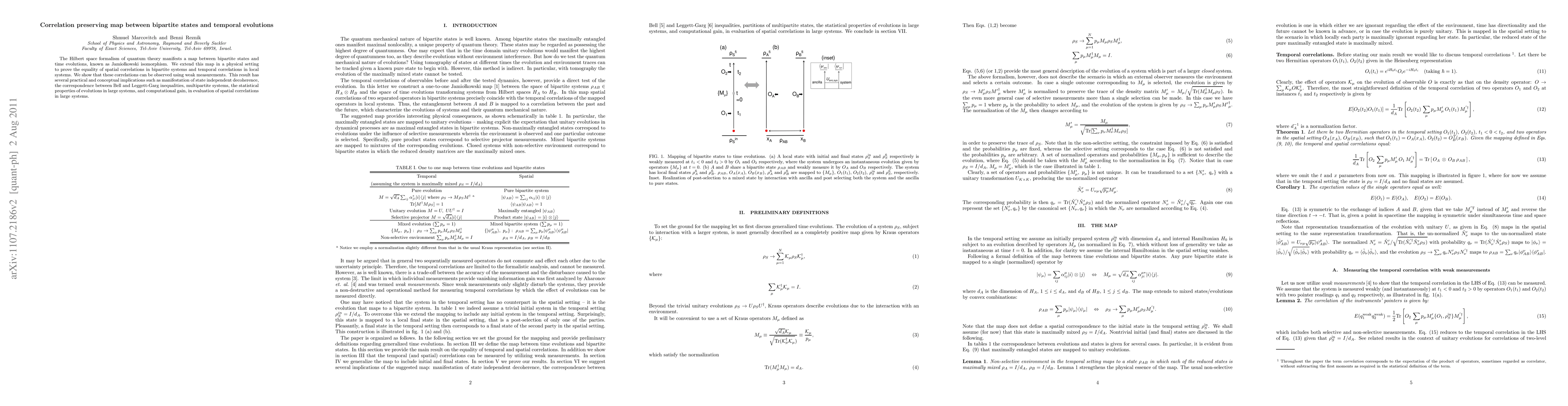 This research extends the Jamiolkowski isomorphism, linking bipartite quantum states with time evolutions, demonstrating that spatial correlations in bipartite systems equal temporal correlations in local systems. These correlations can be detected via weak measurements, with implications for decoherence, Bell and Leggett-Garg inequalities, multipartite systems, large system statistics, and computational efficiency.
