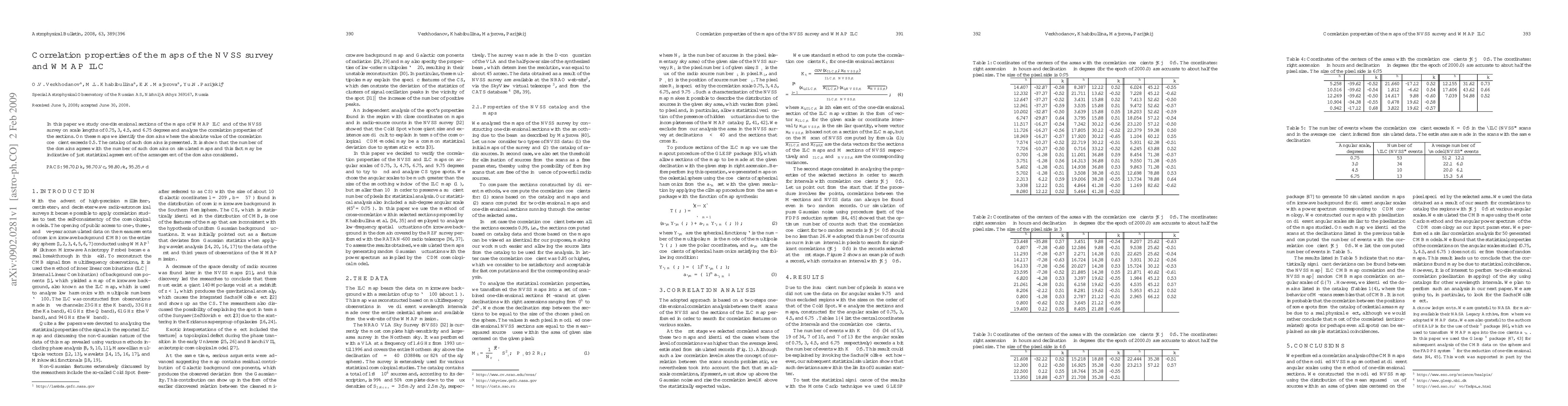 In this paper we study one-dimensional sections of the maps of WMAP ILC and of the NVSS survey on scale lengths of 0.75, 3, 4.5, and 6.75 degrees and analyze the correlation properties of the sections. On these maps we identify the domains where the absolute value of the correlation coefficient exceeds 0.5. The catalog of such domains is presented. It is shown that the number of the domains agrees with the number of such domains on simulated maps and this fact may be indicative of just statistical agreement of the arrangement of the domains considered.
