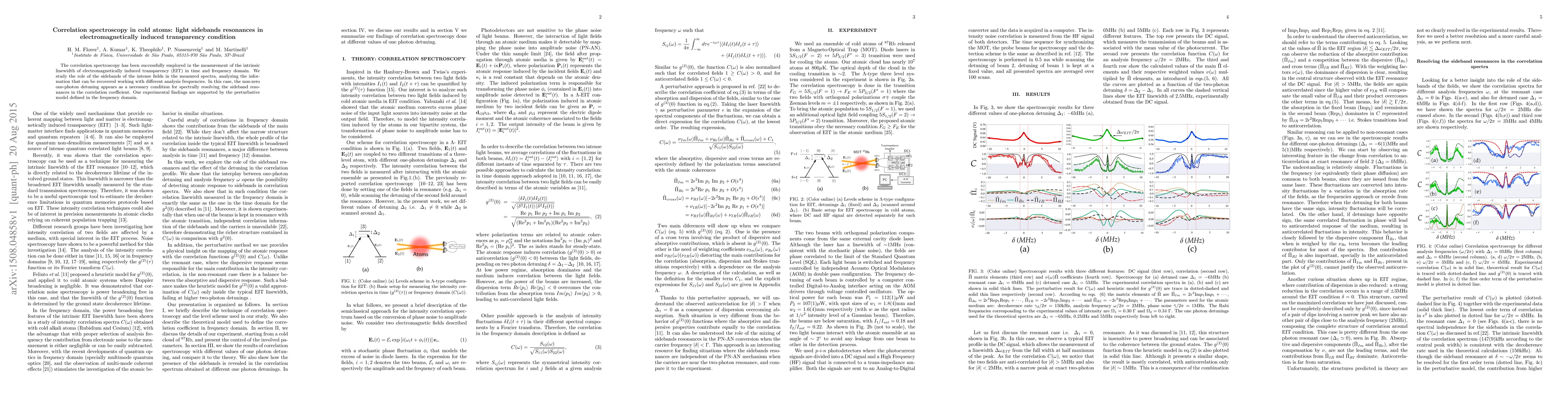 Researchers studied the role of sidebands in correlation spectroscopy for electromagnetically induced transparency in cold atoms, finding that a non-zero one-photon detuning is necessary to resolve resonances in the measured spectra.