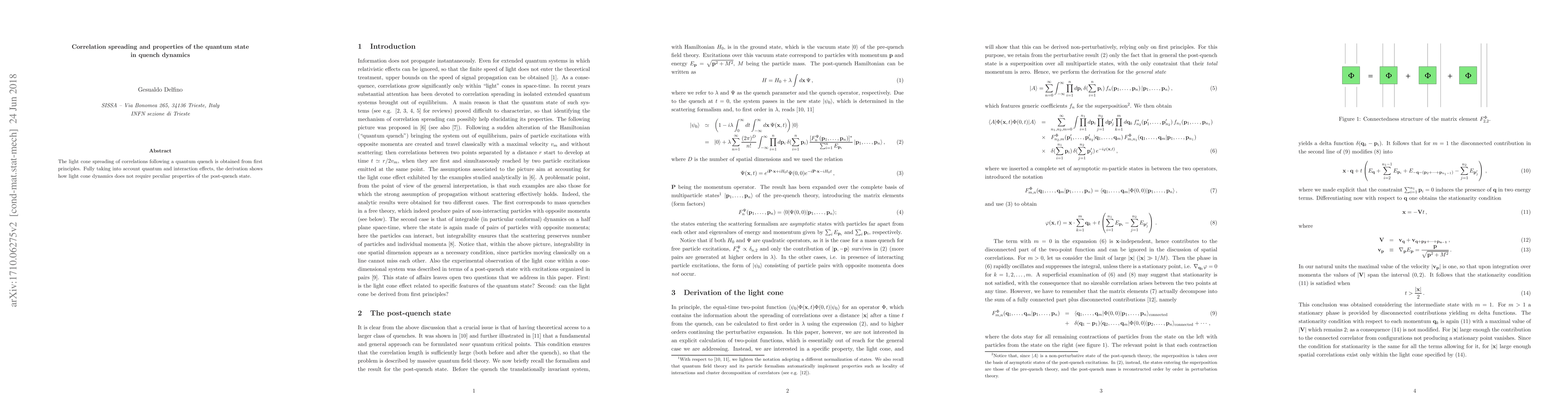 The light cone spreading of correlations following a quantum quench is obtained from first principles. Fully taking into account quantum and interaction effects, the derivation shows how light cone dynamics does not require peculiar properties of the post-quench state.