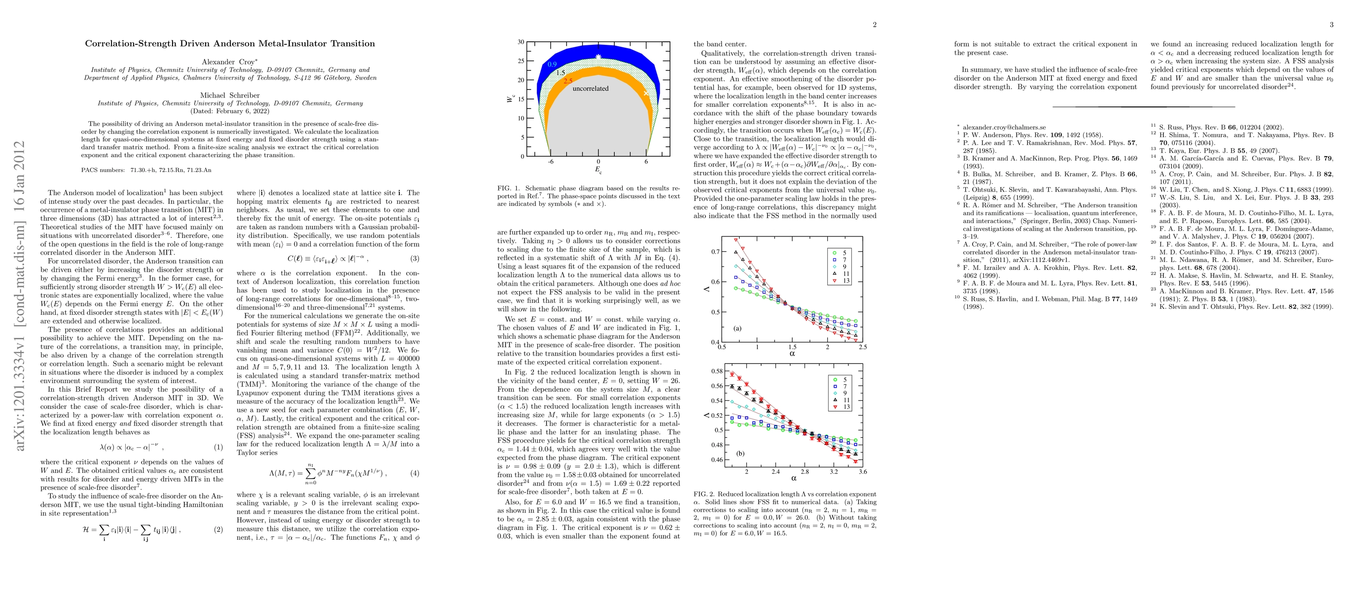 The possibility of driving an Anderson metal-insulator transition in the presence of scale-free disorder by changing the correlation exponent is numerically investigated. We calculate the localization length for quasi-one-dimensional systems at fixed energy and fixed disorder strength using a standard transfer matrix method. From a finite-size scaling analysis we extract the critical correlation exponent and the critical exponent characterizing the phase transition.