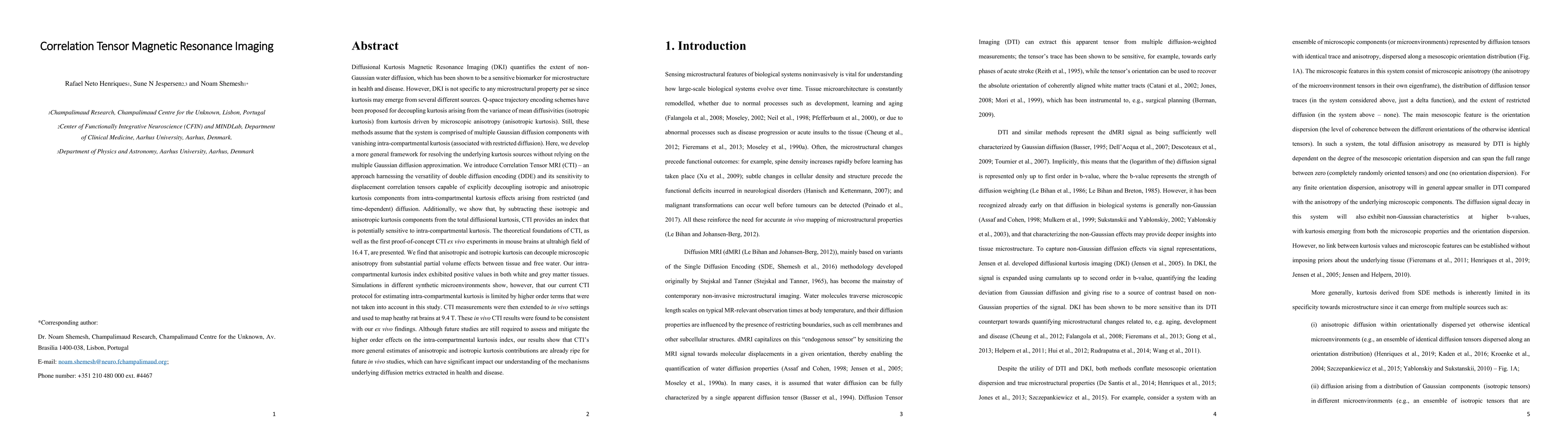 This paper introduces Correlation Tensor MRI (CTI) to decouple isotropic and anisotropic kurtosis components in Diffusional Kurtosis Imaging (DKI), enhancing specificity for microstructural analysis in health and disease. Initial ex vivo and in vivo experiments demonstrate CTI's potential to mitigate partial volume effects and provide insights into intra-compartmental kurtosis, though higher-order terms remain a limitation.