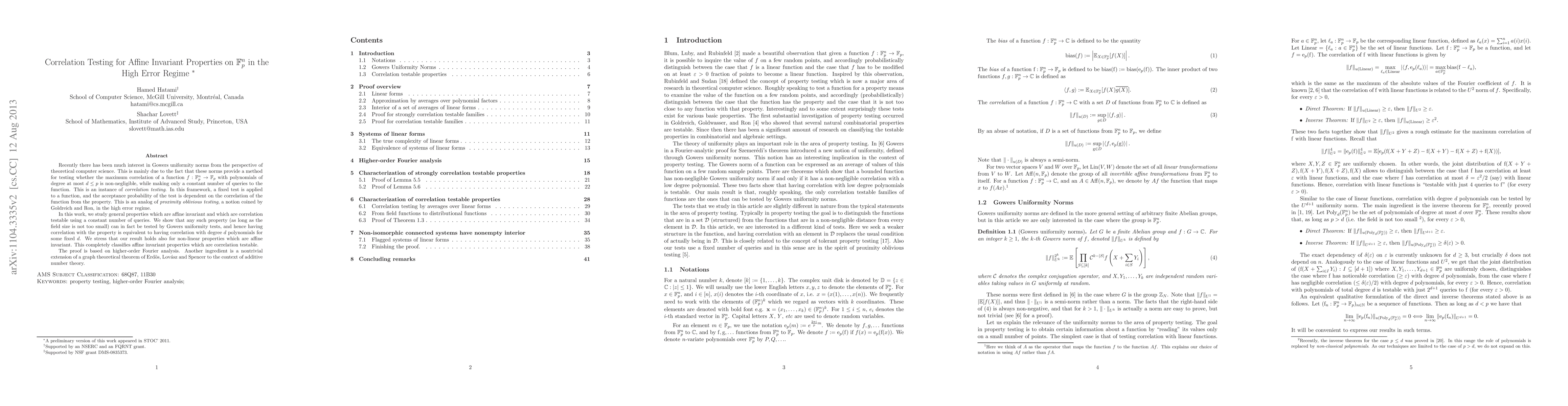This paper explores the correlation testing of affine invariant properties using Gowers uniformity norms in the high error regime. It demonstrates that any affine invariant property that can be tested with a constant number of queries can be tested via Gowers uniformity tests, thus classifying such properties. The proof leverages higher-order Fourier analysis and extends a graph theoretical theorem to additive number theory.