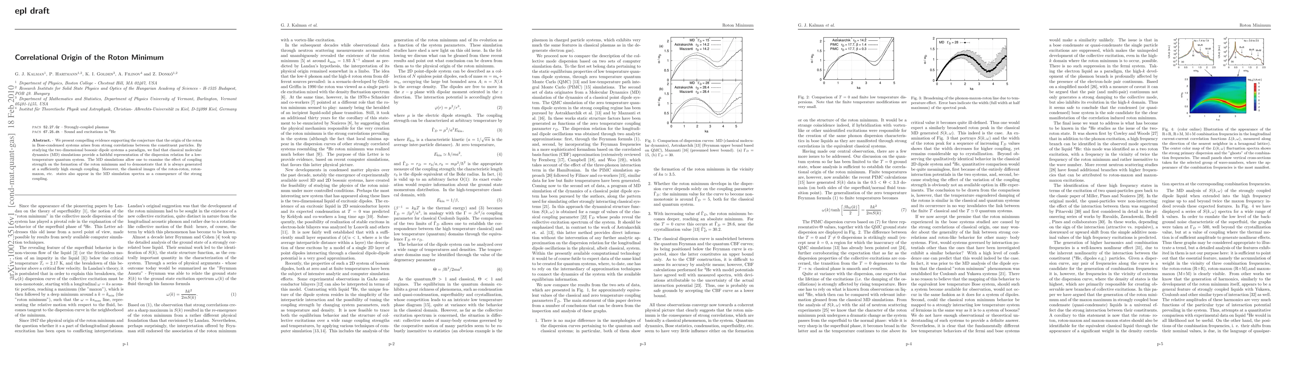This paper demonstrates that the roton minimum in Bose-condensed systems originates from strong particle correlations, using two-dimensional bosonic dipole systems and classical molecular dynamics simulations to show that high coupling strength consistently generates the roton minimum and related states.