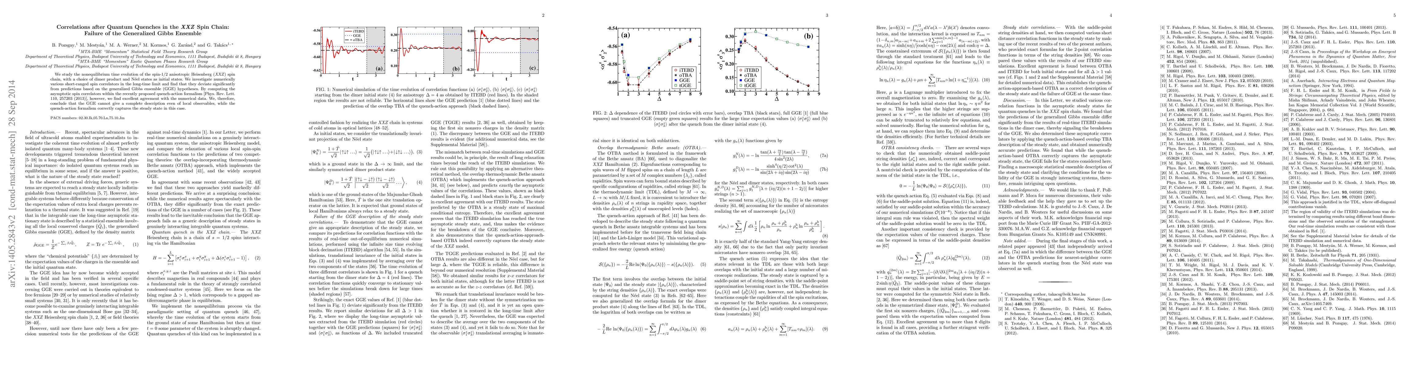 This paper investigates the nonequilibrium dynamics of the XXZ spin chain after quantum quenches, revealing significant deviations in long-time spin correlators from predictions by the generalized Gibbs ensemble (GGE). The quench-action formalism provides a better description of the steady state, indicating the GGE's failure to fully account for local observables.