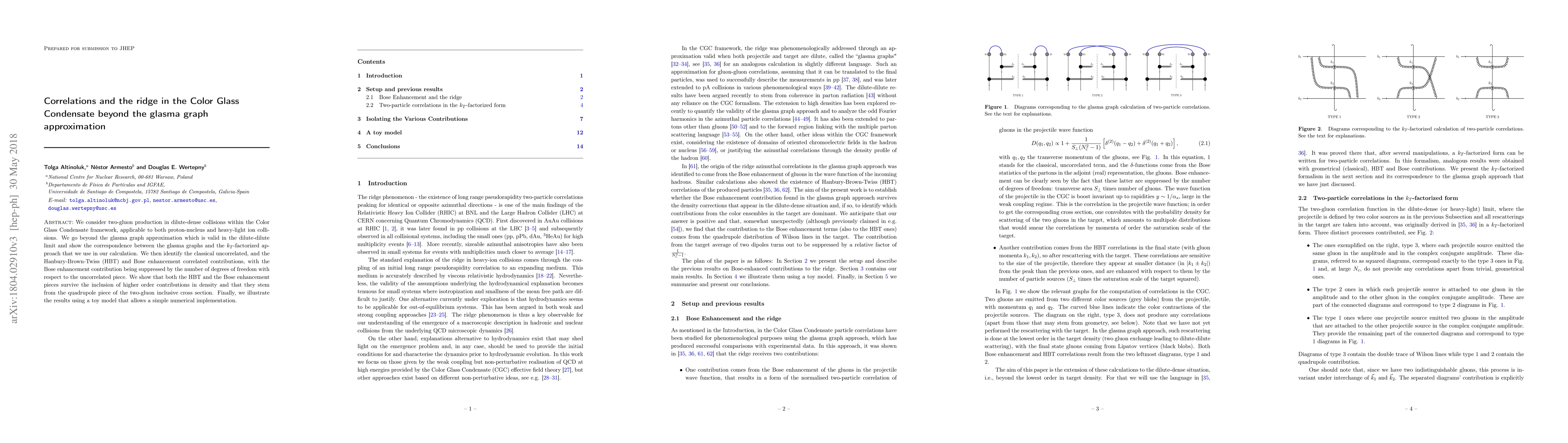 This research investigates two-gluon production in dilute-dense collisions within the Color Glass Condensate framework, moving beyond the glasma graph approximation. It identifies classical, uncorrelated, and correlated contributions, demonstrating the survival of Hanbury-Brown-Twiss and Bose enhancement effects beyond higher-order corrections.