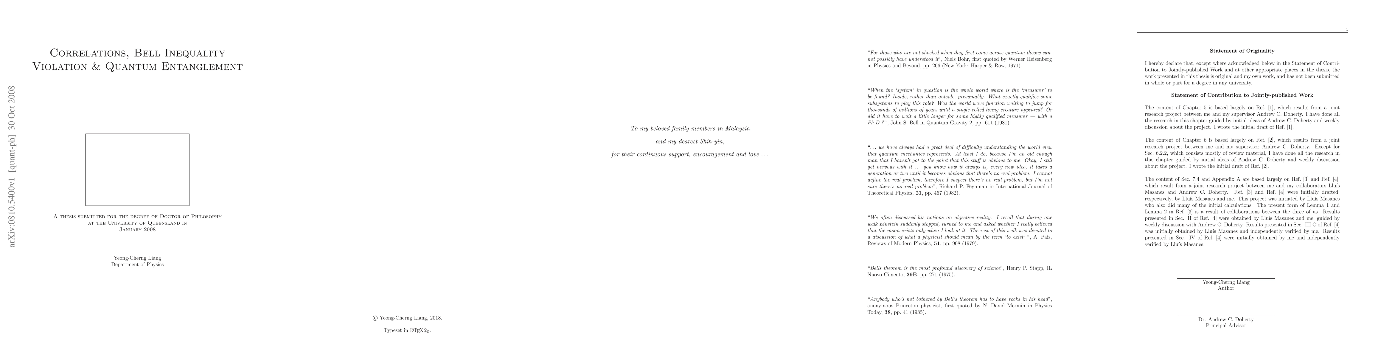 It is one of the most remarkable features of quantum physics that measurements on spatially separated systems cannot always be described by a locally causal theory. In such a theory, the outcomes of local measurements are determined in advance solely by some unknown (or hidden) variables and the choice of local measurements. Correlations that are allowed within the framework of a locally causal theory are termed classical. Typically, the fact that quantum mechanics does not always result in classical correlations is revealed by the violation of Bell inequalities, which are constraints that have to be satisfied by any classical correlations. It has been known for a long time that entanglement is necessary to demonstrate nonclassical correlations, and hence a Bell inequality violation. However, since some entangled quantum states are known to admit explicit locally causal models, the exact role of entanglement in Bell inequality violation has remained obscure. This thesis provides both a comprehensive review on these issues as well as a report on new discoveries made to clarify the relationship between entanglement and Bell inequality violation.