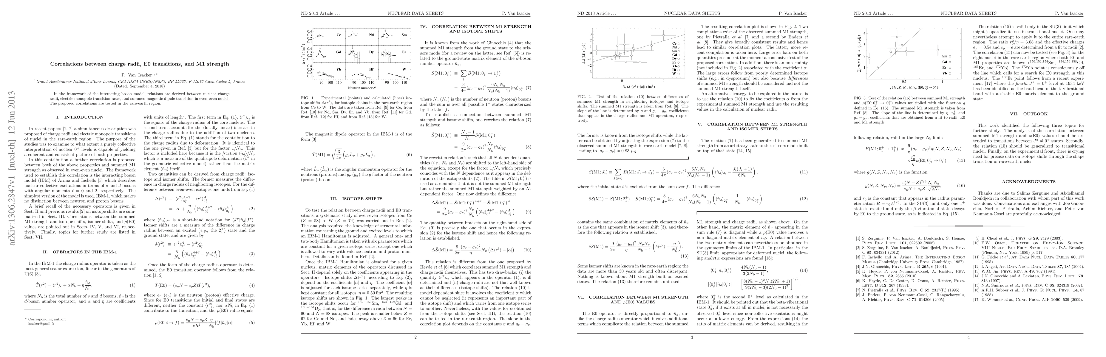 This paper derives correlations within the interacting boson model linking nuclear charge radii, electric monopole transition rates, and summed magnetic dipole transitions in even-even nuclei, and tests these correlations specifically in the rare-earth region.