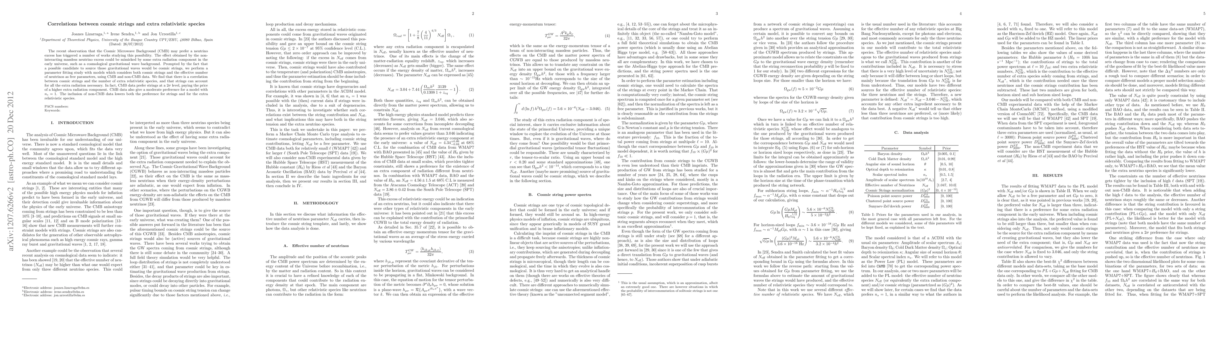 This paper investigates the correlation between cosmic strings and extra relativistic species, finding that cosmic strings can account for the observed excess radiation in the Cosmic Microwave Background (CMB). The study uses CMB and non-CMB data to show that while CMB data prefer cosmic strings at a 2sigma level, the inclusion of non-CMB data reduces this preference.