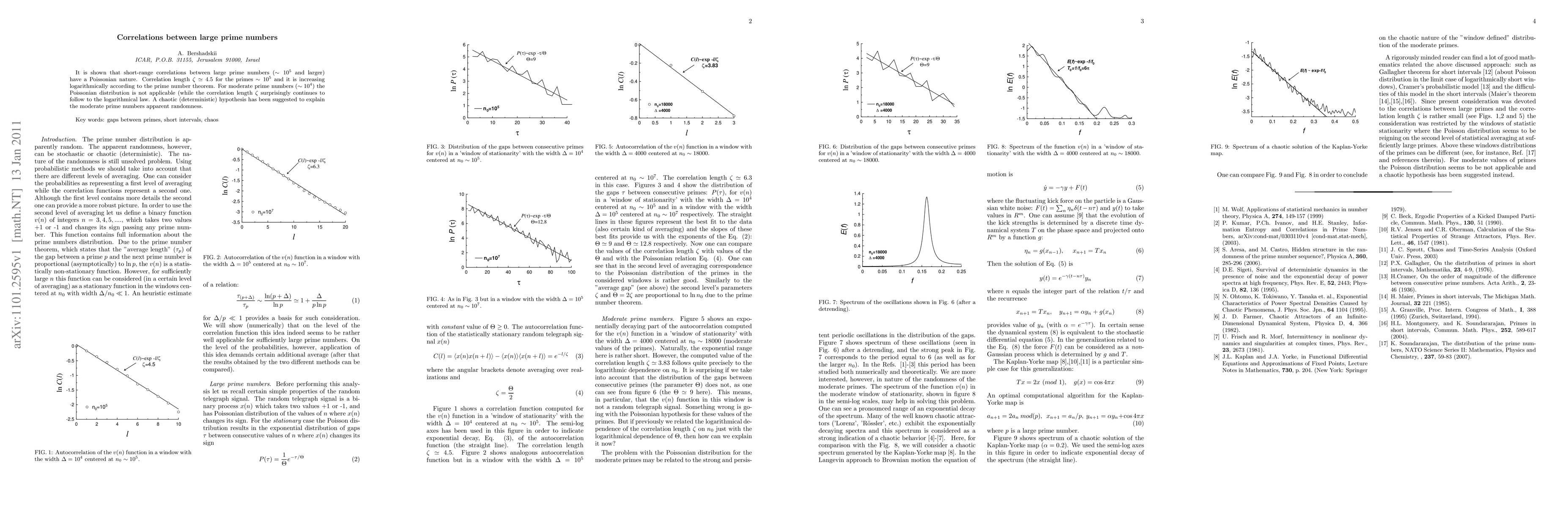 It is shown that short-range correlations between large prime numbers (~10^5 and larger) have a Poissonian nature. Correlation length \zeta = 4.5 for the primes ~10^5 and it is increasing logarithmically according to the prime number theorem. For moderate prime numbers (~10^4) the Poissonian distribution is not applicable while the correlation length surprisingly continues to follow to the logarithmical law. A chaotic (deterministic) hypothesis has been suggested to explain the moderate prime numbers apparent randomness.