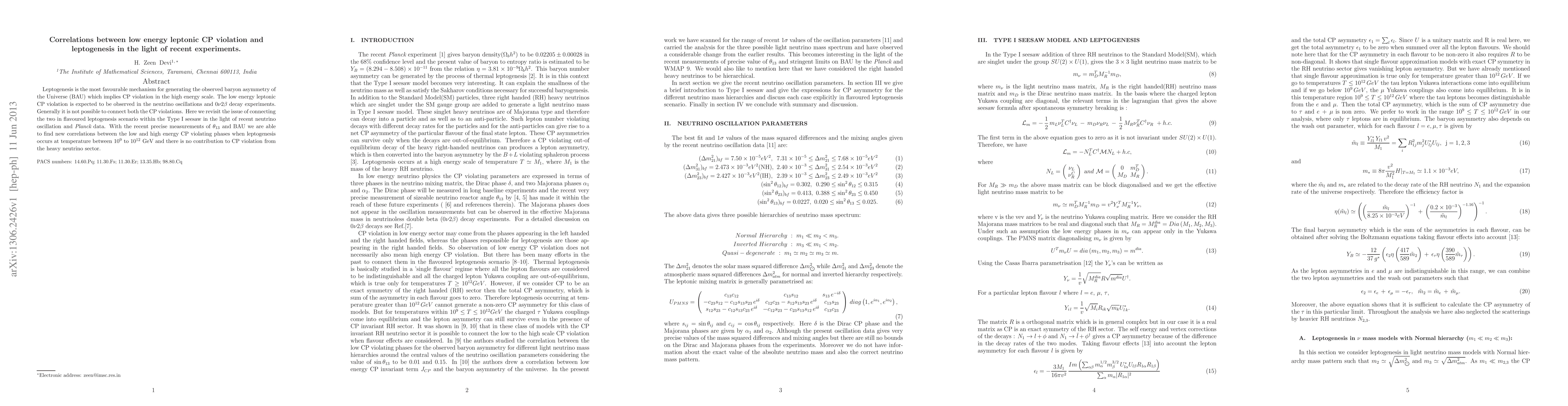 This paper explores correlations between low energy leptonic CP violation, observed in neutrino oscillations and $0\nu 2 \beta$ decay, and high energy CP violation in leptogenesis, within the Type I seesaw framework. It finds new connections between the two CP violating phases using recent neutrino oscillation and Planck data.