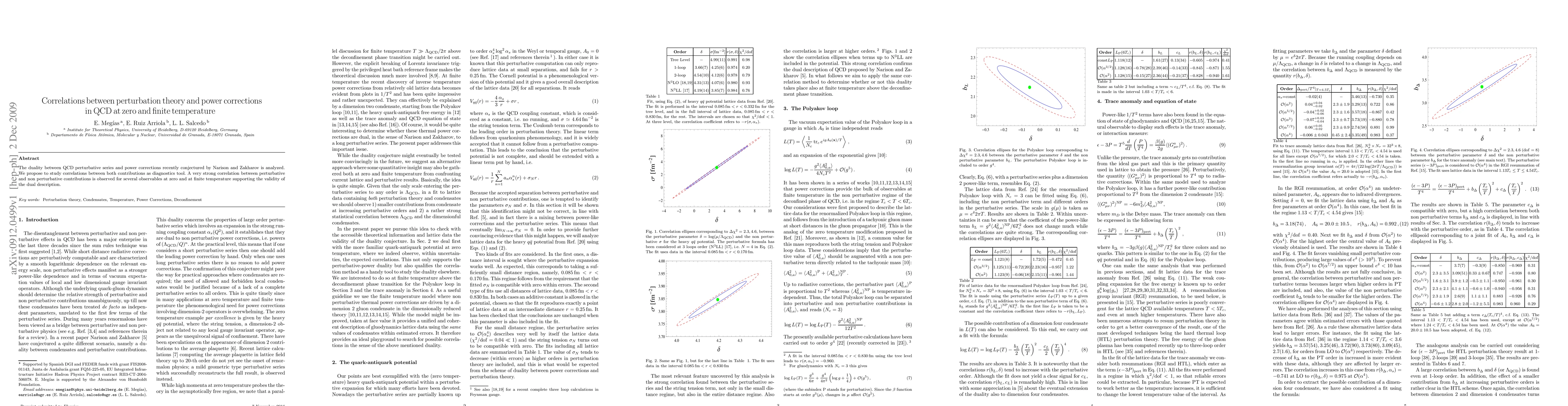 Summary: The paper explores the duality between perturbative QCD series and power corrections, finding a strong correlation between these contributions for various observables at both zero and finite temperatures, supporting the conjectured dual description.