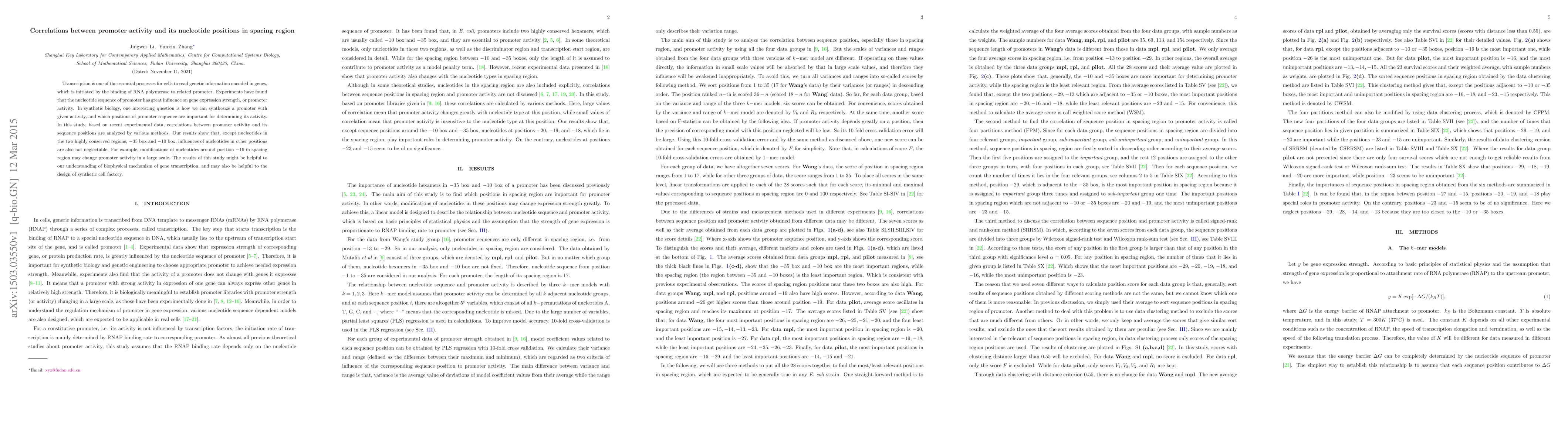 A study analyzing promoter activity correlations found that nucleotide positions outside of highly conserved regions significantly impact gene expression strength. Modifying specific positions, such as -19 in the spacing region, can greatly affect promoter activity.