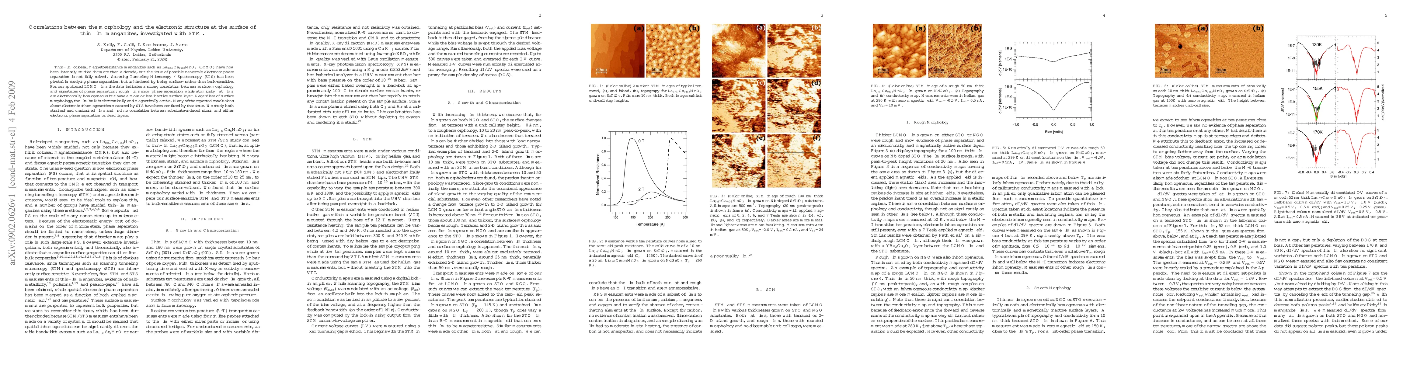 Thin film manganites show a correlation between surface morphology and electronic phase separation, with rough films exhibiting phase separation and flat films being electronically homogeneous but inactive at the surface.
