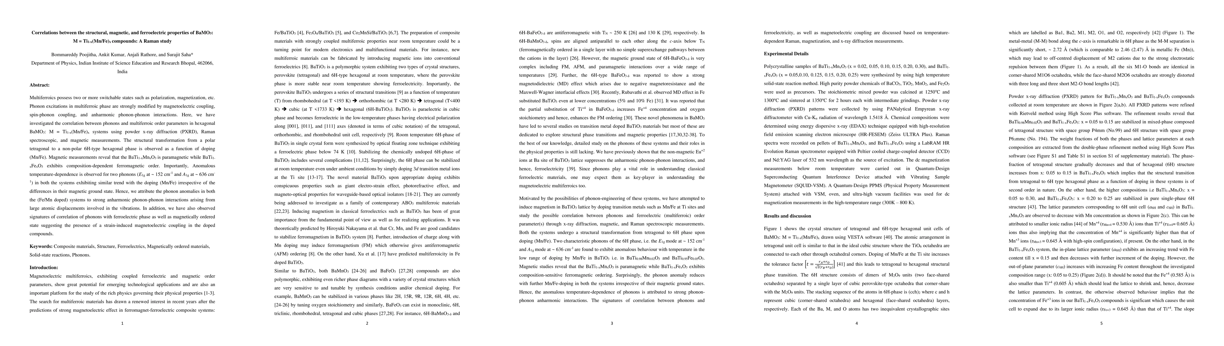 Multiferroics possess two or more switchable states such as polarization, magnetization, etc. Phonon excitations in multiferroic phase are strongly modified by magnetoelectric coupling, spin-phonon coupling, and anharmonic phonon-phonon interactions. Here, we have investigated the correlation between phonons and multiferroic order parameters in hexagonal BaMO3: M = Ti1-x(Mn/Fe)x systems using powder x-ray diffraction (PXRD), Raman spectroscopic, and magnetic measurements. The structural transformation from a polar tetragonal to a non-polar 6H-type hexagonal phase is observed as a function of doping (Mn/Fe). Magnetic measurements reveal that the BaTi1-xMnxO3 is paramagnetic while BaTi1-xFexO3 exhibits composition-dependent ferromagnetic order. Importantly, Anomalous temperature-dependence is observed for two phonons (E1g at ~ 152 cm-1 and A1g at ~ 636 cm-1) in both the systems exhibiting similar trend with the doping (Mn/Fe) irrespective of the differences in their magnetic ground state. Hence, we attribute the phonon anomalies in both the (Fe/Mn doped) systems to strong anharmonic phonon-phonon interactions arising from large atomic displacements involved in the vibrations. In addition, we have also observed signatures of correlation of phonons with ferroelectric phase as well as magnetically ordered state suggesting the presence of a strain-induced magnetoelectric coupling in the doped compounds.