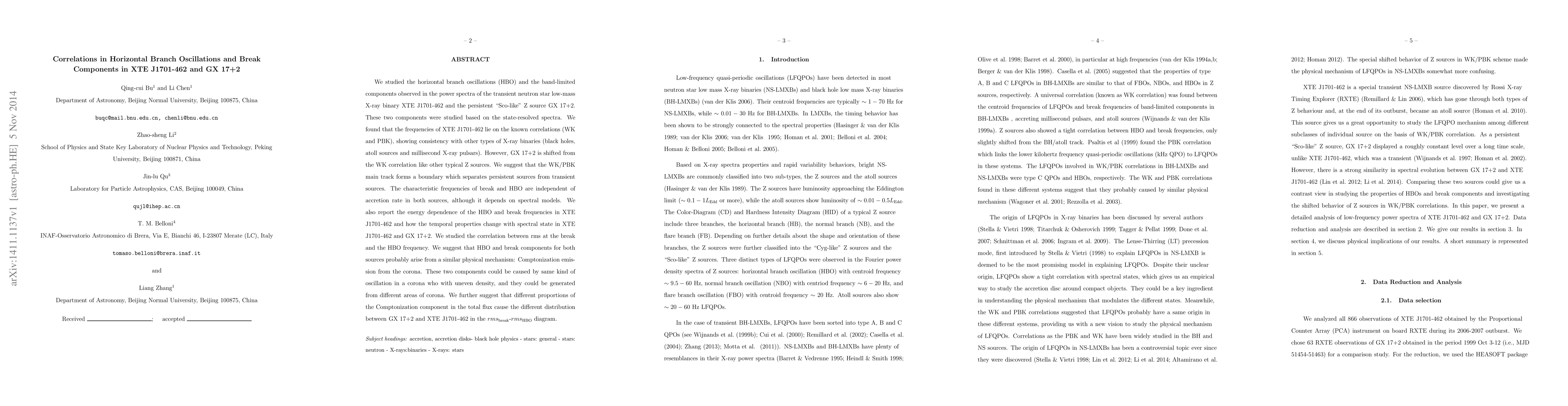 Research found correlations between horizontal branch oscillations and break components in XTE J1701-462 and GX 17+2, suggesting a common physical mechanism of Comptonization emission from the corona.