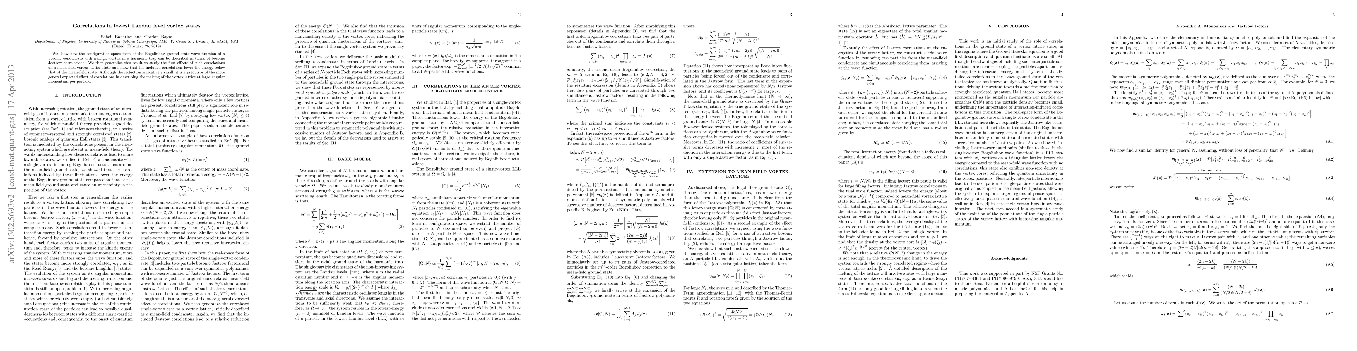 This paper explores how the ground state wave function of a bosonic condensate with a single vortex can be expressed using bosonic Jastrow correlations, and extends this to a vortex lattice, demonstrating that these correlations lower the energy compared to mean-field predictions, indicating a potential role in vortex lattice melting.