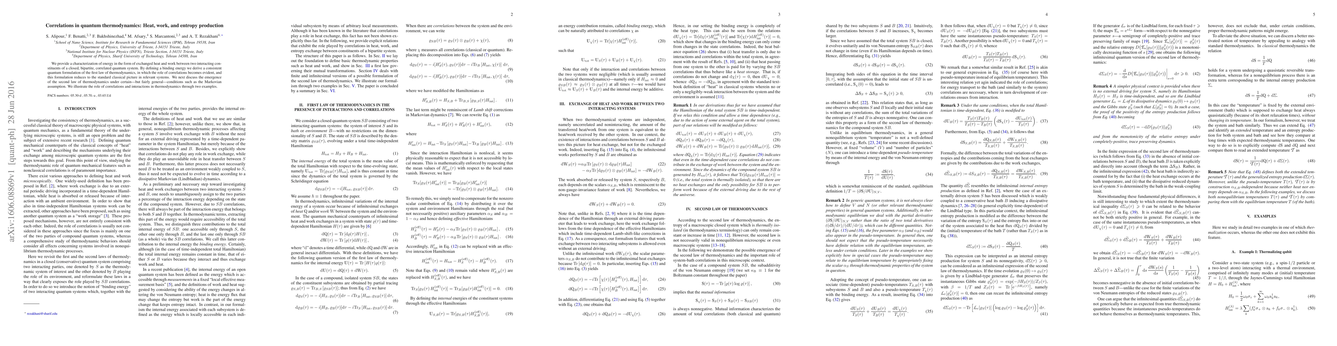 This paper characterizes energy exchanges in correlated quantum systems, deriving a quantum formulation of the first law of thermodynamics that highlights the role of correlations. It also explores the emergence of the second law under general conditions, using examples to illustrate the impact of quantum correlations and interactions on thermodynamics.