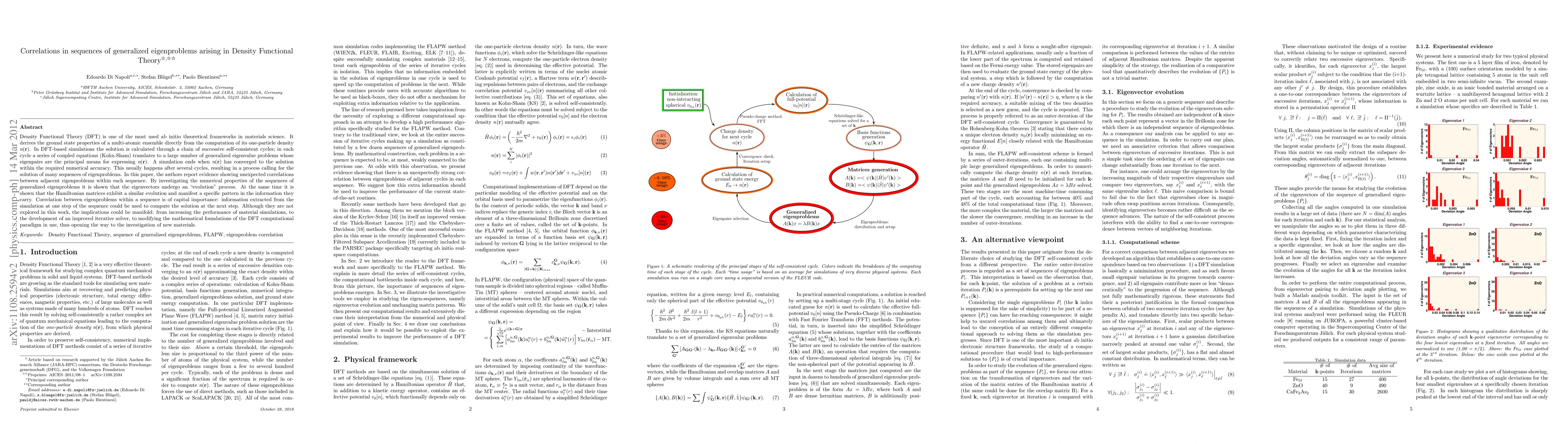 Density Functional Theory (DFT) is one of the most used ab initio theoretical frameworks in materials science. It derives the ground state properties of a multi-atomic ensemble directly from the computation of its one-particle density \nr .In DFT-based simulations the solution is calculated through a chain of successive self-consistent cycles; in each cycle a series of coupled equations (Kohn-Sham) translates to a large number of generalized eigenvalue problems whose eigenpairs are the principal means for expressing \nr. A simulation ends when \nr\ has converged to the solution within the required numerical accuracy. This usually happens after several cycles, resulting in a process calling for the solution of many sequences of eigenproblems. In this paper, the authors report evidence showing unexpected correlations between adjacent eigenproblems within each sequence. By investigating the numerical properties of the sequences of generalized eigenproblems it is shown that the eigenvectors undergo an "evolution" process. At the same time it is shown that the Hamiltonian matrices exhibit a similar evolution and manifest a specific pattern in the information they carry. Correlation between eigenproblems within a sequence is of capital importance: information extracted from the simulation at one step of the sequence could be used to compute the solution at the next step. Although they are not explored in this work, the implications could be manifold: from increasing the performance of material simulations, to the development of an improved iterative solver, to modifying the mathematical foundations of the DFT computational paradigm in use, thus opening the way to the investigation of new materials.