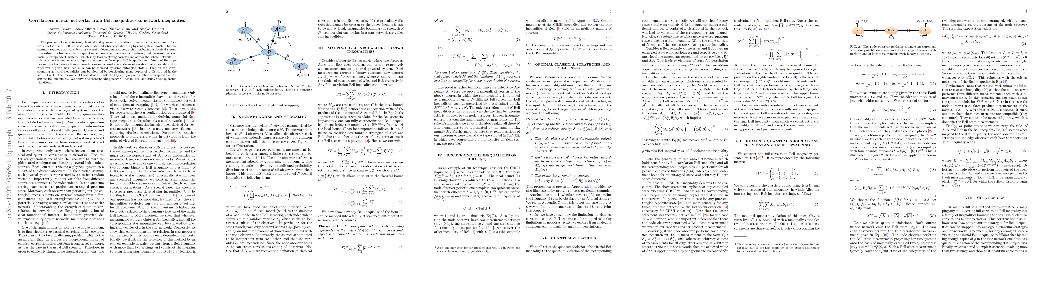 This paper introduces a method to map Bell inequalities to network inequalities, showing that violating certain quantum correlations can lead to violations of others in a star-configuration network.