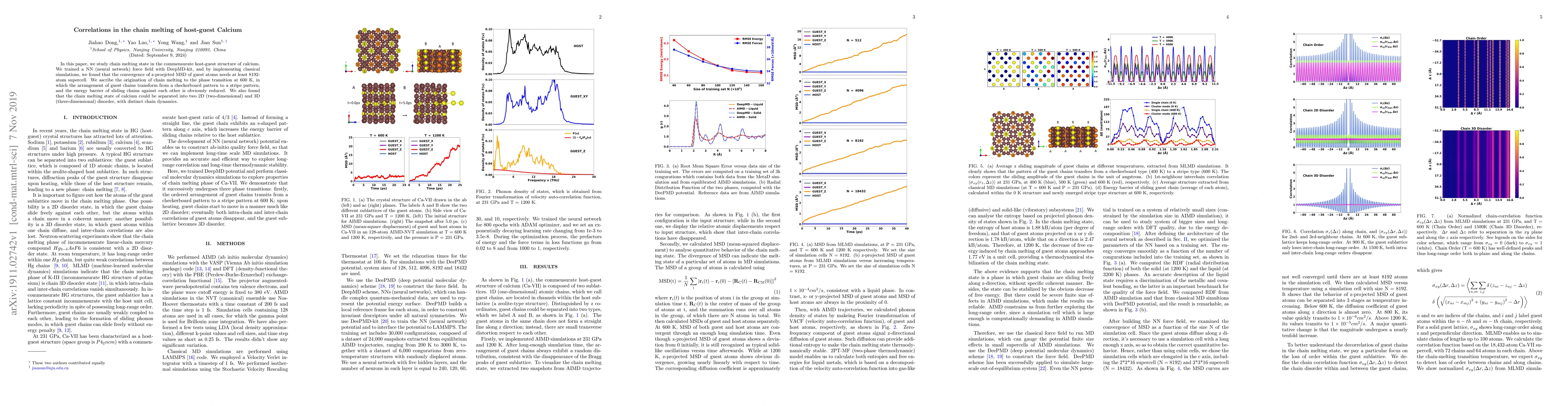 Researchers found that calcium's chain melting state in a host-guest structure transitions at 600 K from a checkerboard pattern to a stripe pattern, reducing the energy barrier for sliding chains.