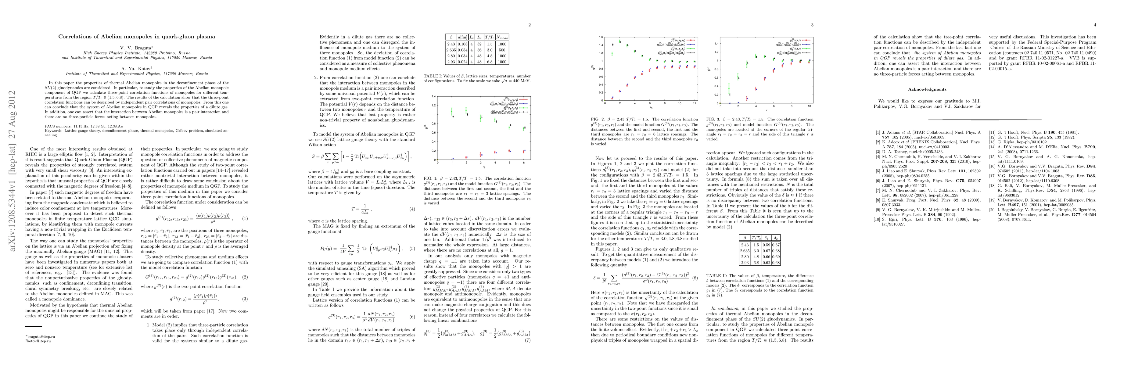 In this paper the properties of thermal Abelian monopoles in the deconfinement phase of the SU(2) gluodynamics are considered. In particular, to study the properties of the Abelian monopole component of QGP we calculate three-point correlation functions of monopoles for different temperatures from the region $T/T_c \in (1.5, 6.8)$. The results of the calculation show that the three-point correlation functions can be described by independent pair correlations of monopoles. From this one can conclude that the system of Abelian monopoles in QGP reveals the properties of a dilute gas. In addition, one can assert that the interaction between Abelian monopoles is a pair interaction and there are no three-particle forces acting between monopoles.