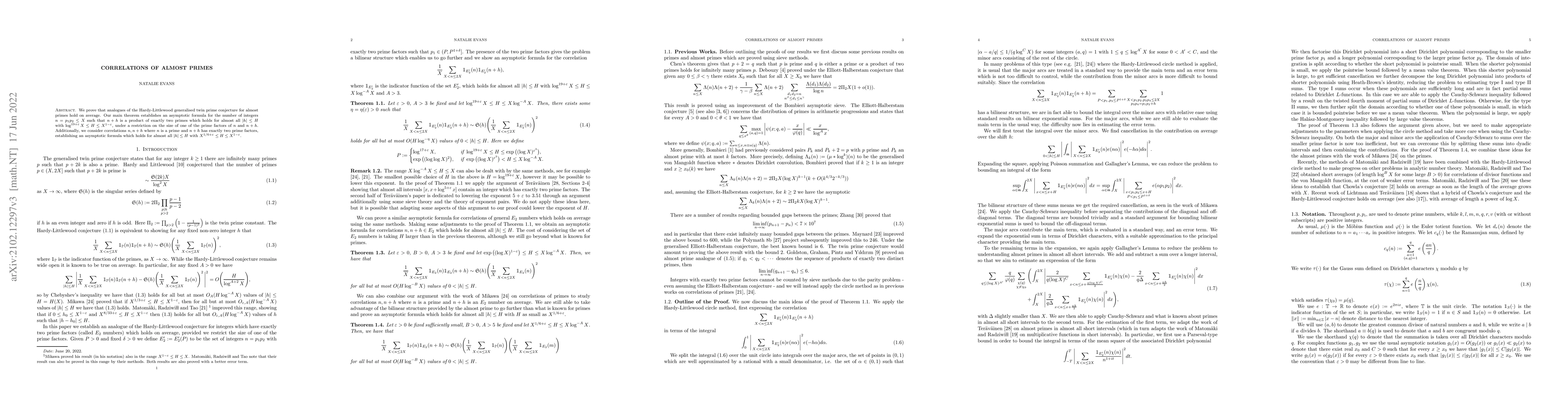 This research paper establishes asymptotic formulas for correlations between almost primes and prime numbers, providing insight into the distribution of prime numbers and their relationships.