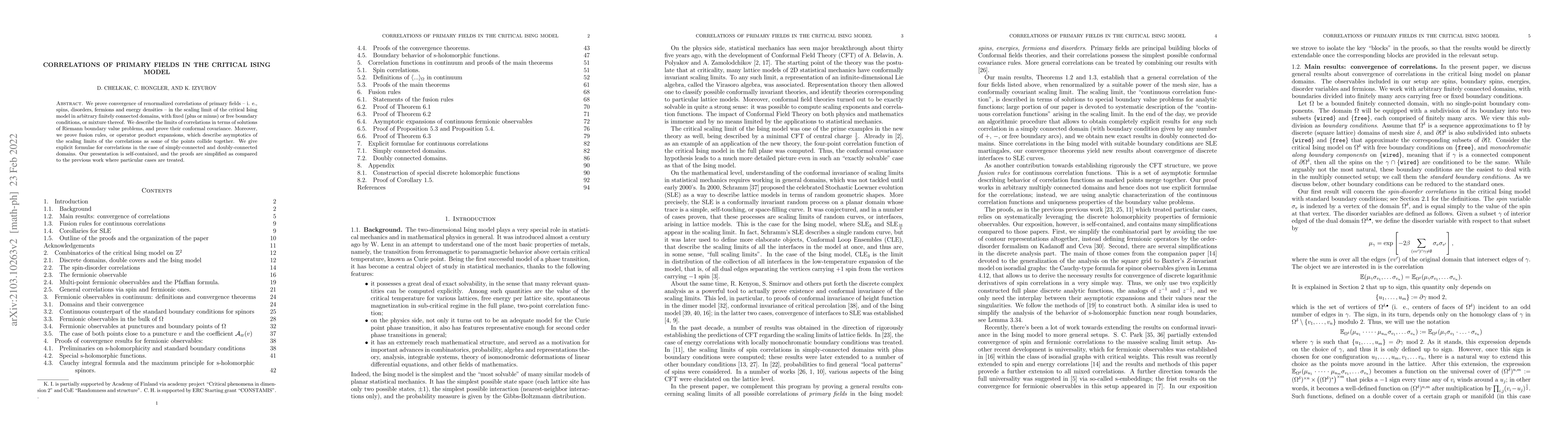 The paper proves convergence of correlations in the critical Ising model for various domain shapes and boundary conditions, describing their limits in terms of solutions to Riemann boundary value problems with conformal covariance and fusion rules.