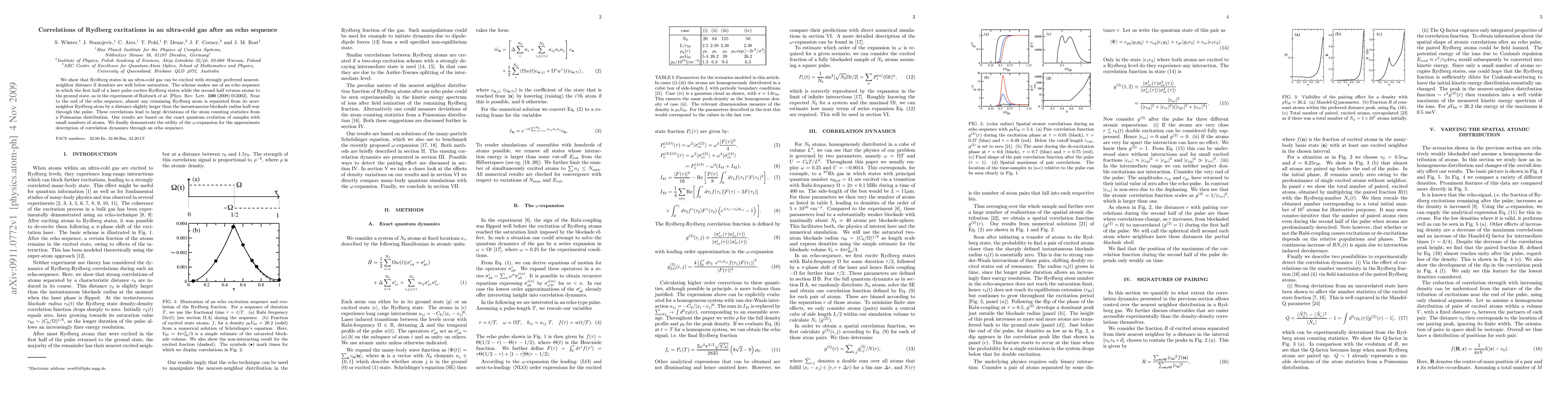 This paper demonstrates that Rydberg excitations in ultra-cold gases exhibit strong nearest-neighbor correlations when densities are low, achieved via an echo sequence that separates Rydberg atoms by a distance slightly larger than the blockade radius. The study reveals significant deviations from Poissonian statistics and utilizes the omega-expansion for approximate correlation dynamics.