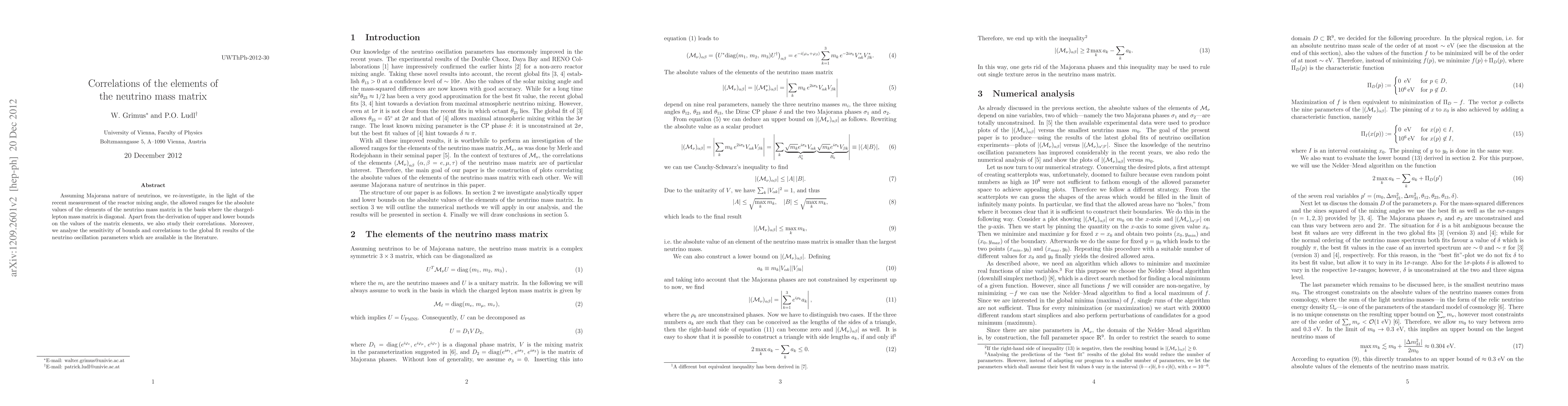 Researchers investigate the allowed ranges for neutrino mass matrix elements under Majorana neutrinos, establishing bounds on absolute values and correlations between elements. Their analysis incorporates recent reactor mixing angle measurements and sensitivity to global fit results of neutrino oscillation parameters.