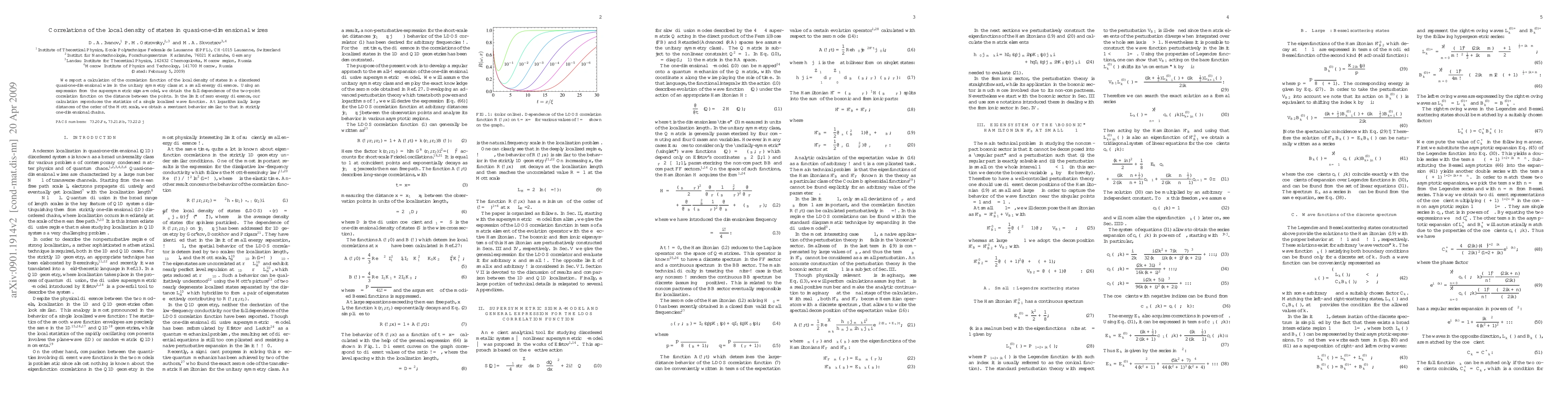 Researchers calculated the local density of states in disordered quasi-one-dimensional wires, finding a reentrant behavior similar to strictly one-dimensional chains at large distances, and reproducing single localized wave function statistics at zero energy difference.