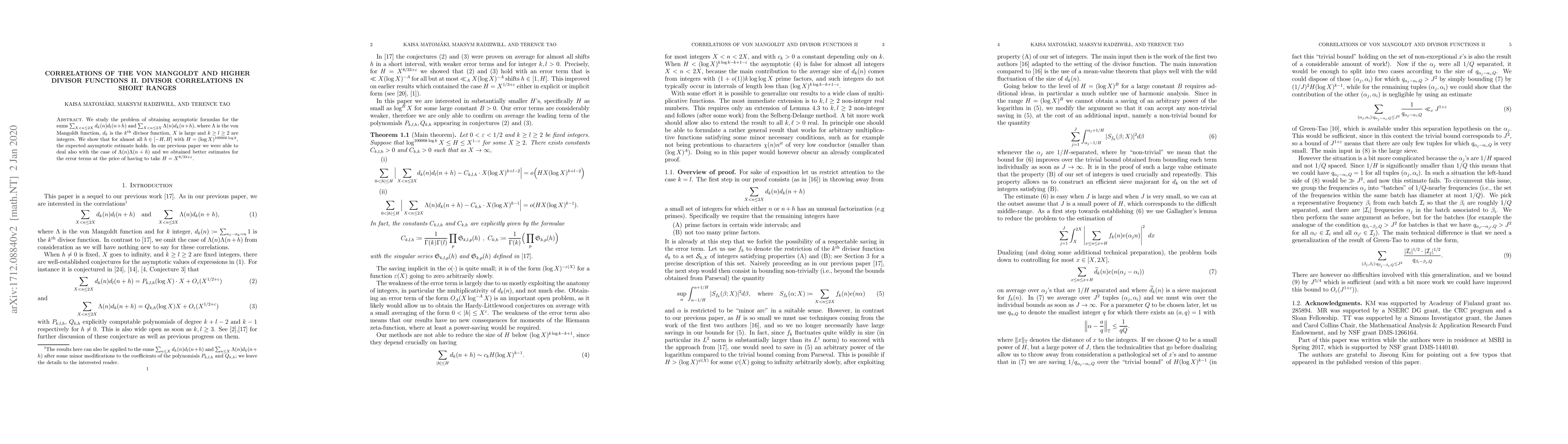 Researchers study divisor correlations in short ranges using asymptotic formulas for sums involving the von Mangoldt and divisor functions. They find that almost all h values within a certain range satisfy the expected estimates.