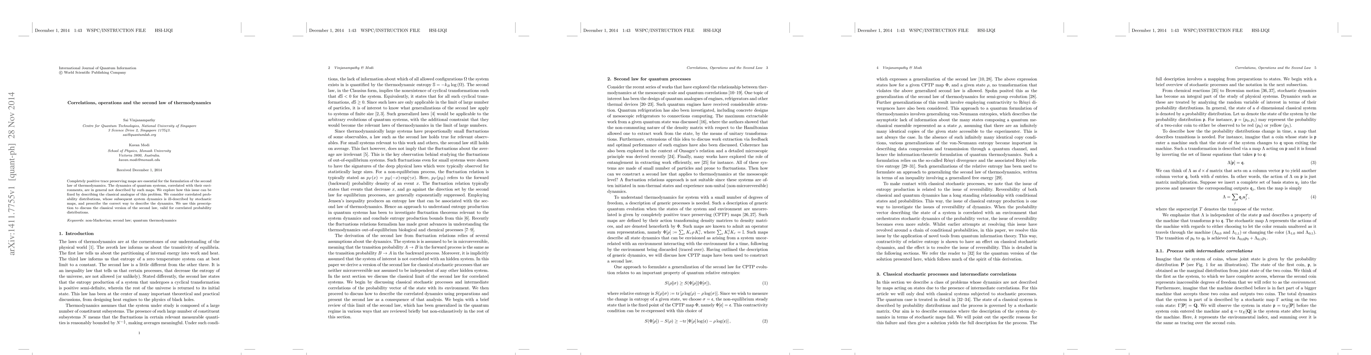 This paper investigates how to properly describe the dynamics of quantum systems correlated with their environments, which are not captured by completely positive trace preserving maps. It proposes a classical analogue approach to resolve this issue and formulates a valid version of the second law of thermodynamics for correlated probability distributions.