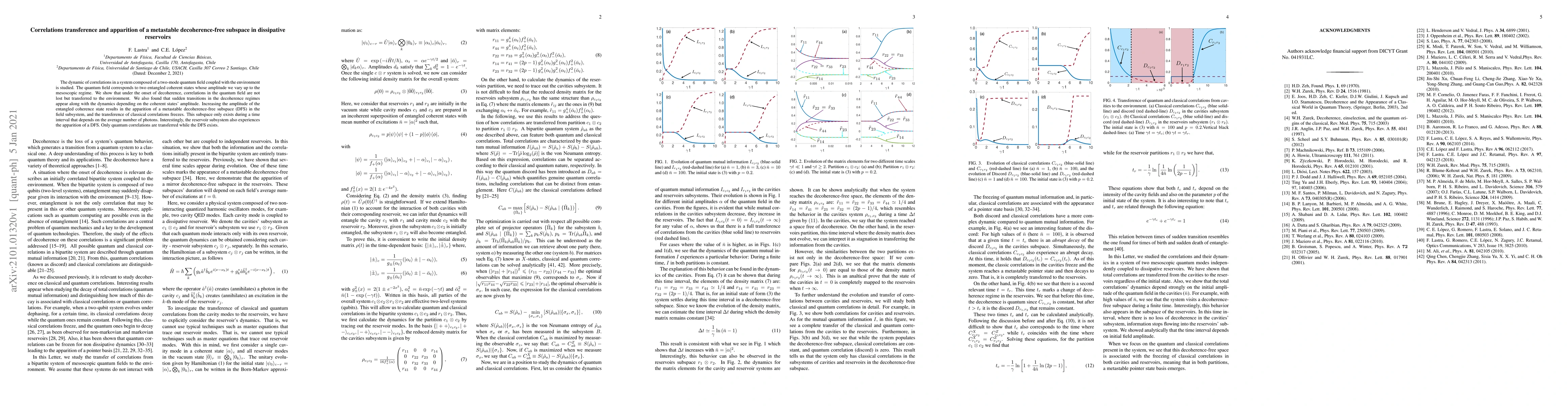 This paper investigates the dynamics of correlations in a quantum field coupled with an environment, showing that decoherence leads to the transfer of correlations to the environment. It reveals the emergence of a metastable decoherence-free subspace in both the quantum field and the reservoir, where only quantum correlations persist.