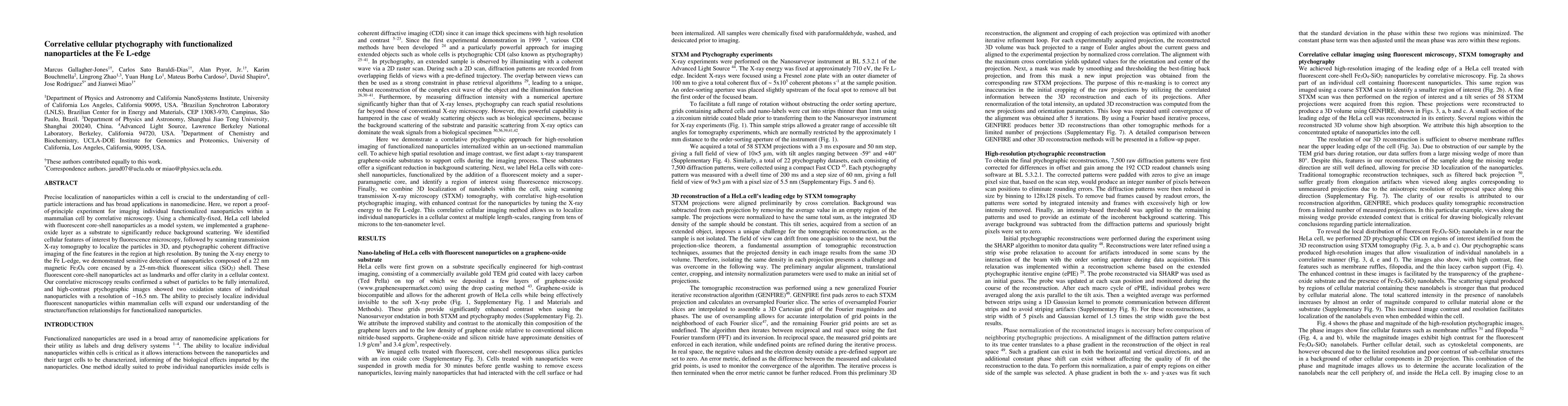 This study demonstrates a correlative microscopy technique using functionalized nanoparticles to precisely localize and characterize individual nanoparticles within a mammalian cell. By combining fluorescence microscopy, scanning transmission X-ray tomography, and ptychographic coherent diffractive imaging at the Fe L-edge, researchers identified internalized particles and revealed their oxidation states with high resolution.