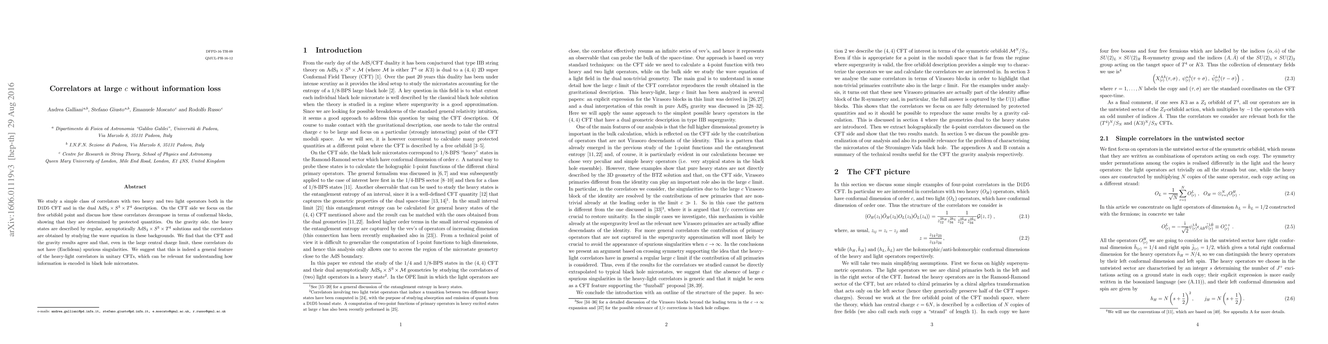 We study a simple class of correlators with two heavy and two light operators both in the D1D5 CFT and in the dual AdS$_3 \times S^3 \times T^4$ description. On the CFT side we focus on the free orbifold point and discuss how these correlators decompose in terms of conformal blocks, showing that they are determined by protected quantities. On the gravity side, the heavy states are described by regular, asymptotically AdS$_3 \times S^3 \times T^4$ solutions and the correlators are obtained by studying the wave equation in these backgrounds. We find that the CFT and the gravity results agree and that, even in the large central charge limit, these correlators do not have (Euclidean) spurious singularities. We suggest that this is indeed a general feature of the heavy-light correlators in unitary CFTs, which can be relevant for understanding how information is encoded in black hole microstates.